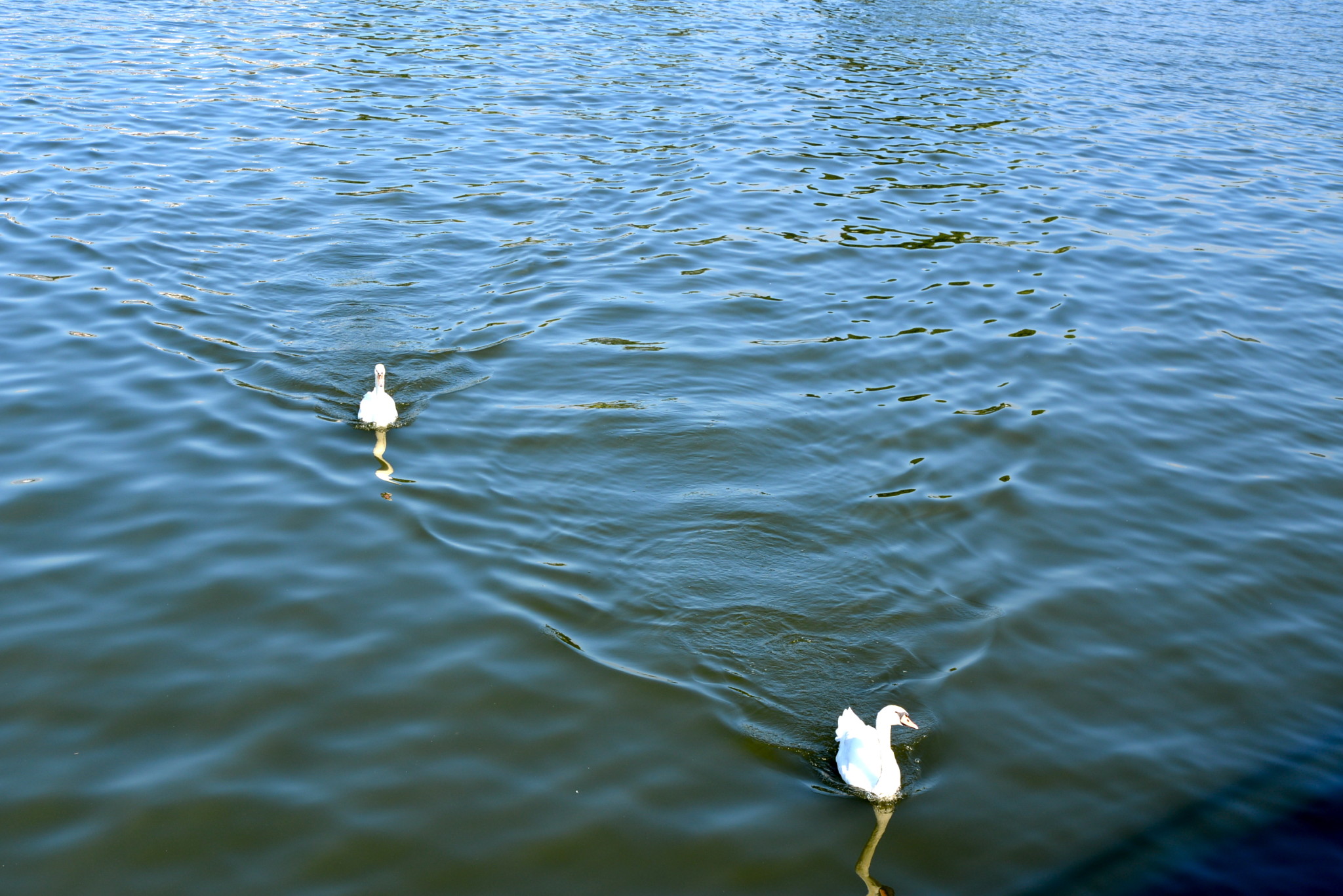 河里的鸭子看见你靠近岸边,立马就从远处过来欢迎你哟~讨要食物哦。