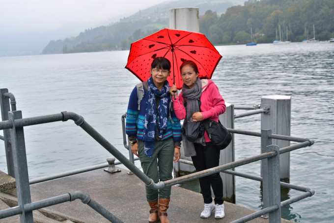 我们到达Faulensee时,已近黄昏,阴天间雨;MM们早已按耐不住,放下行李就兴冲冲的走了下