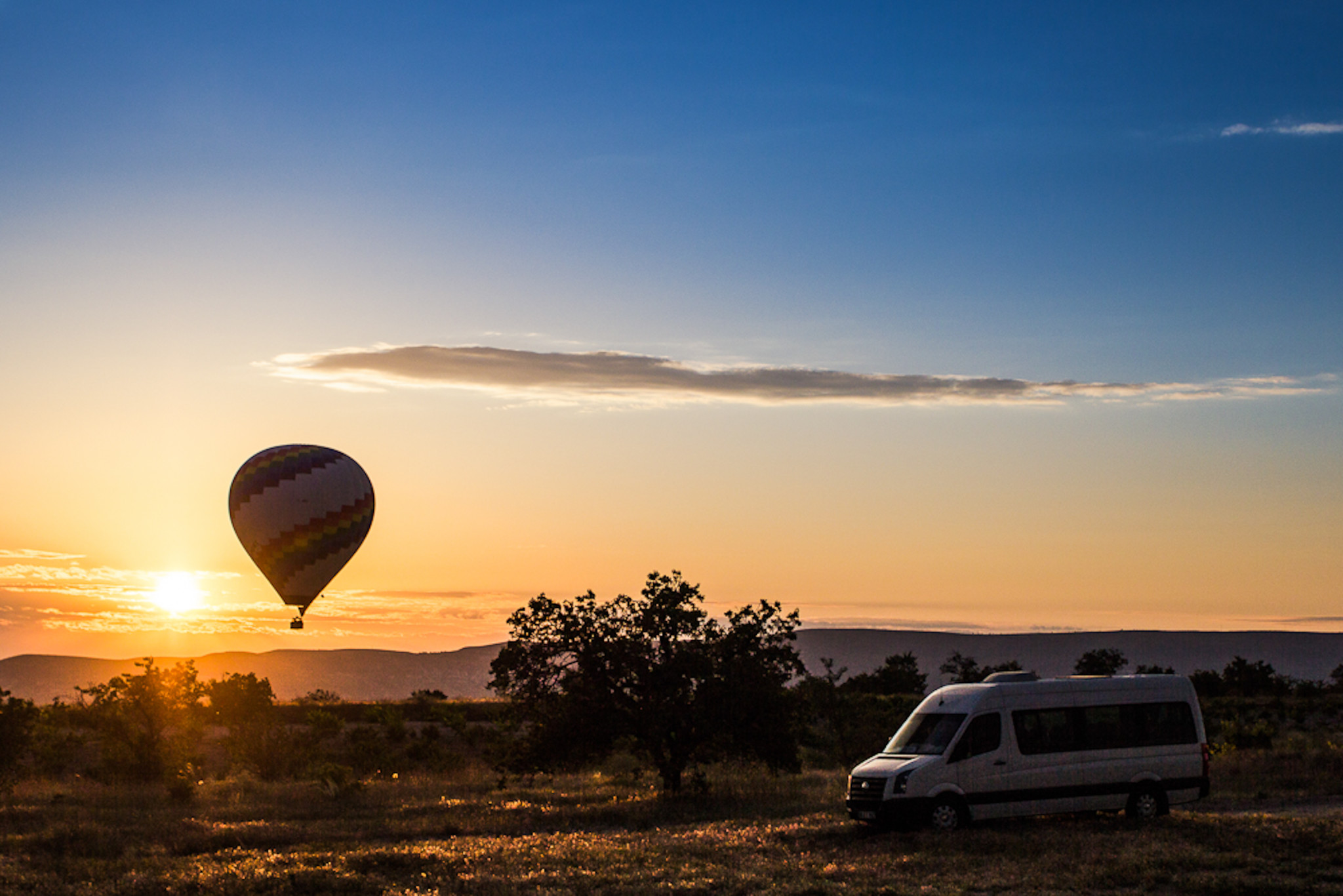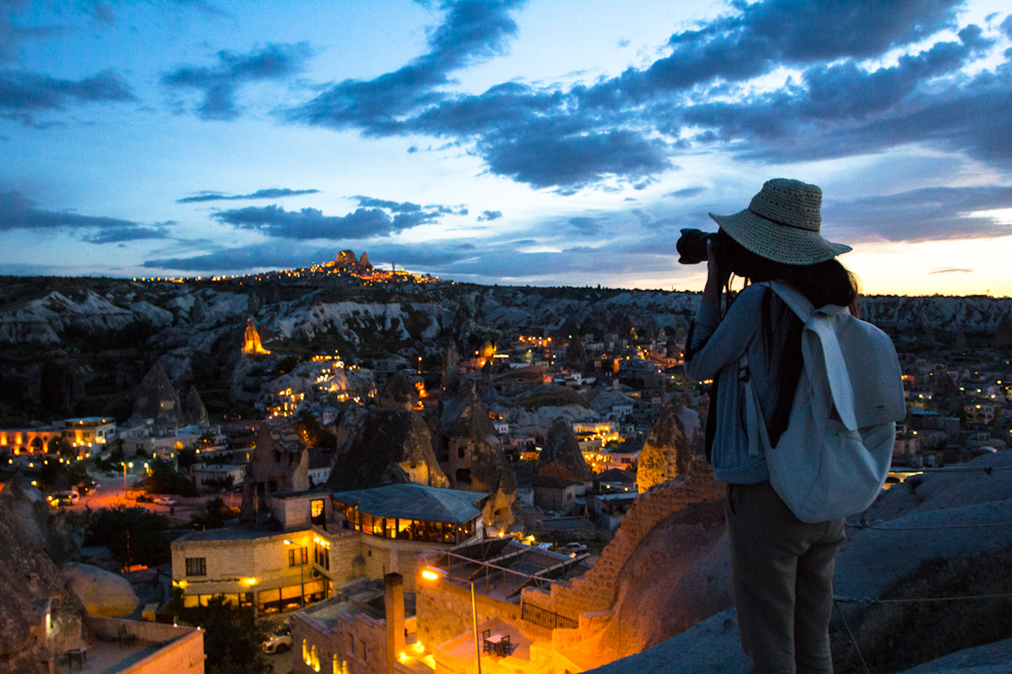 在伊斯坦布尔 2天后,坐上一早飞机,飞卡帕多起亚。上午到达。注意,下飞机是有机场大巴的,直接开到达格雷姆小镇的汽车站,出机场大门左手边(飞机场就一个门)大停车场最远地方,有个大巴,免费的。一般乘坐的人非常少,所以别扼杀人类的第六感,走过去和司机贫两句你就找到了。