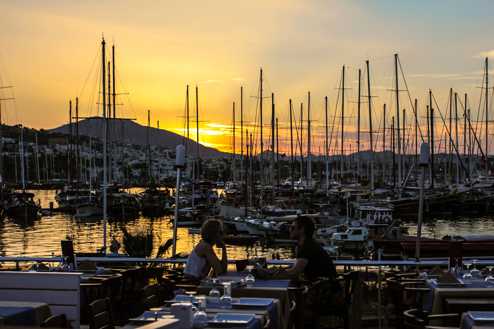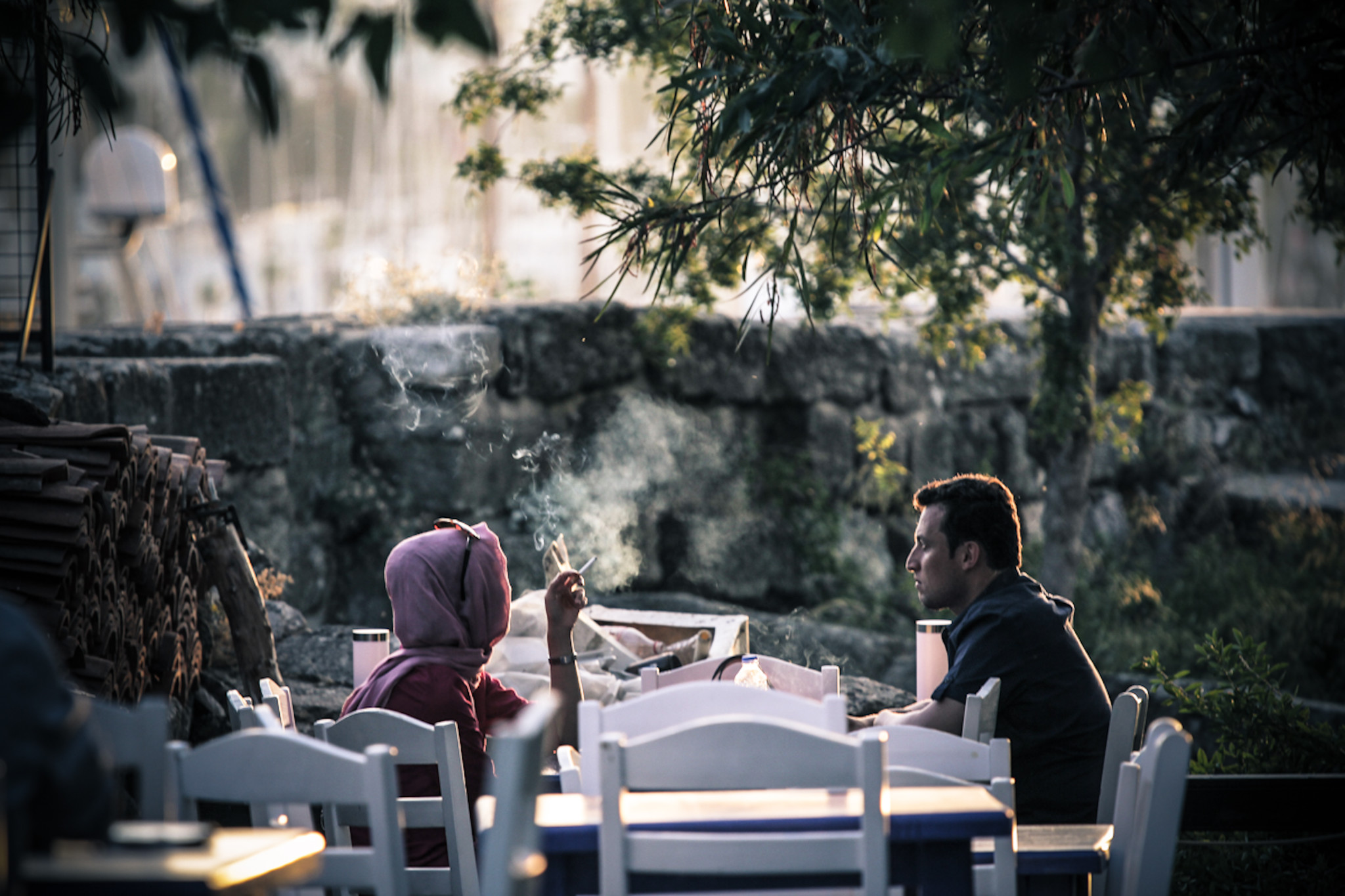 费特希耶 第一天晚上:沿着街道走路回住处,发现露天酒店在布置婚礼场地,冒昧的探头探脑进去拍了两张,一不小心和准备婚礼的人聊上了两句,一不小心又被邀请晚上8点来参加,真是兴奋异常…一场陌生人的婚礼就上演了。