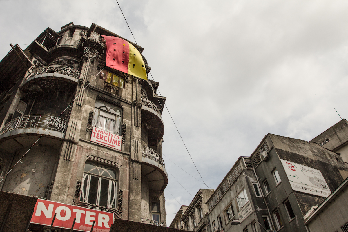 倒叙开始可能让我写的更有感觉。因为在即将离开土耳其 回国的那几个小时,很是奇遇。因为我遇到了“游行”这件事。这个“游行”不是挥舞着旗帜、散发着传单的土国游行示威。而是我在回酒店取行李奔赴机场时,离酒店不行3分钟的小街道中,遇到了全副武装的防爆警察,用催泪弹驱赶人群,人群的主干力量是年轻人,他们带着类似我们国家中民工带的安全帽,有的带着防毒面具。当我看到一群人从塔克西姆广场那边,连跑带颠想我靠近时候,我第一感受是兴奋。终于赶上这波了,一个帝都长大的孩子赶上这样的画面,真是犹如挣脱缰绳的小野马一般。当我还在兴奋的时候,一声巨响,远处近处的人群炸窝一般的四处乱逃。我还没来得急举起相机抓拍,本能的意识就告诉我,你不是!战地记者!说时急那时快,我也跟着土国人民拐进小路。这个时候我在混乱中跟着几个土国人民进入了街边一家餐馆。老板身手敏捷,把进来的人们往里一推,顺势把餐厅的大闸门往下一拉,大家瞬间都有一种,我们安全了的感觉,我看着餐厅,想着大家要不要来一杯,聊10块钱的时。老板问我是那里人,回答他后,他对我说有个中国 人是这里的厨师,说着就往后厨走去。其他土国游行人士,对我说别怕没事,一会警察走了,你就能出来了。其实我一点也没害怕,我中华人民哪能如此就吓到了,淡定的很呢。我其实就是着急,近在咫尺的酒店如何回去,回去后拿完行李会不会戒严,戒严了我的飞机是否能赶得上。