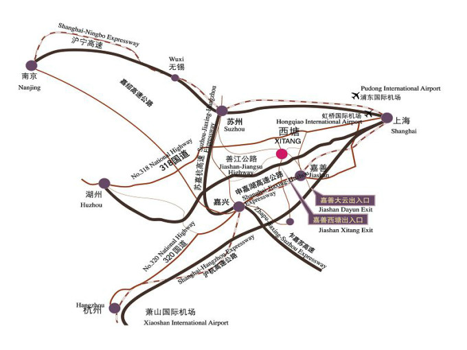嘉善下高速,沿路都有指示牌,其实就是转出后一条笔直的路,很好找~