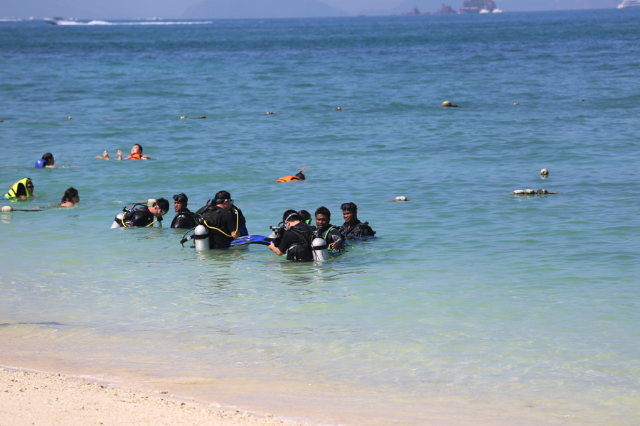 自我安慰下,跟团也有跟团的好处,包个游艇,一早出门,晚上回来,蓝钻岛、小皮皮,情人沙滩,大皮皮岛吃中饭,下午翠竹岛、大堡礁浮潜都玩下来了。。。