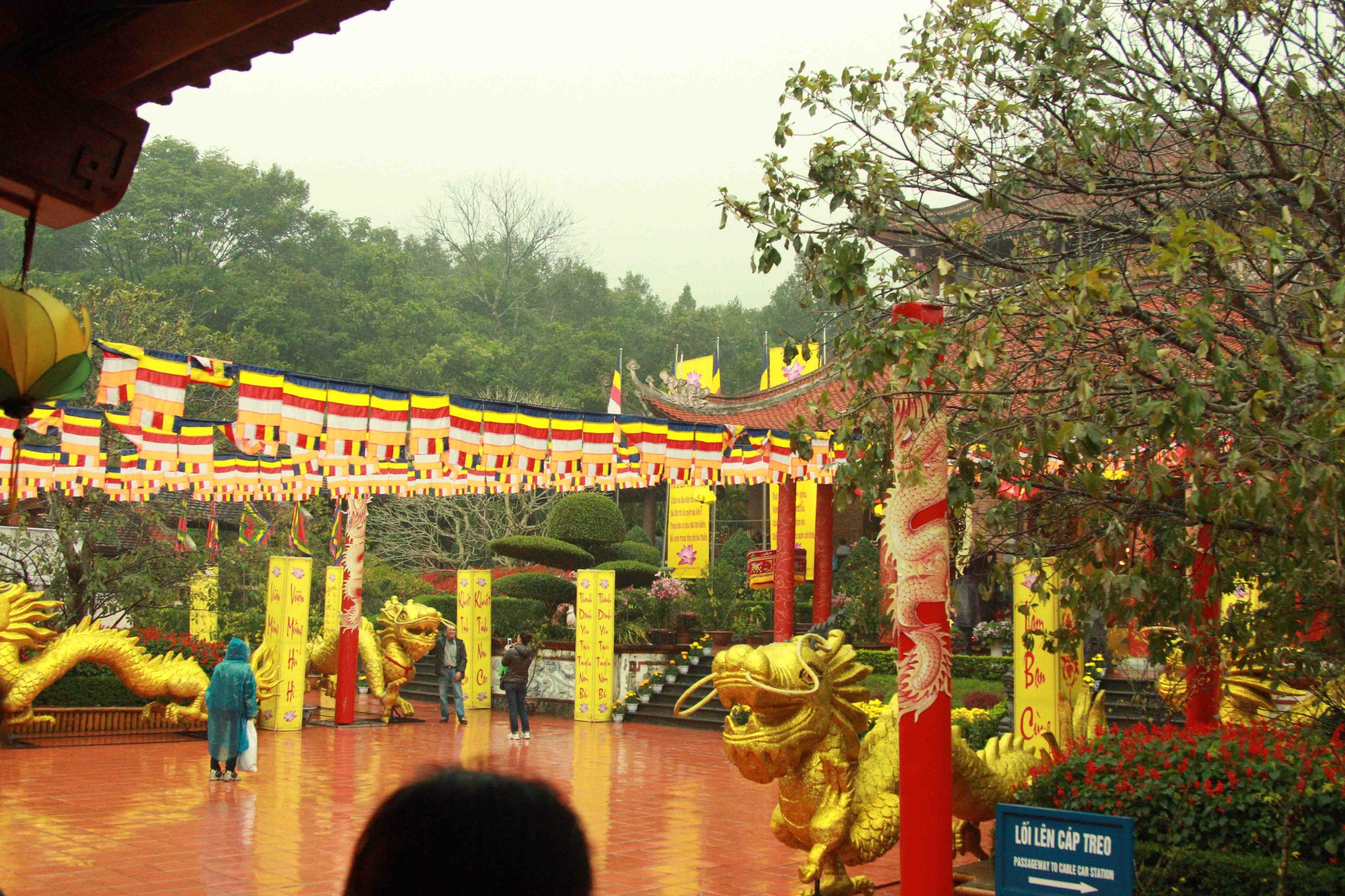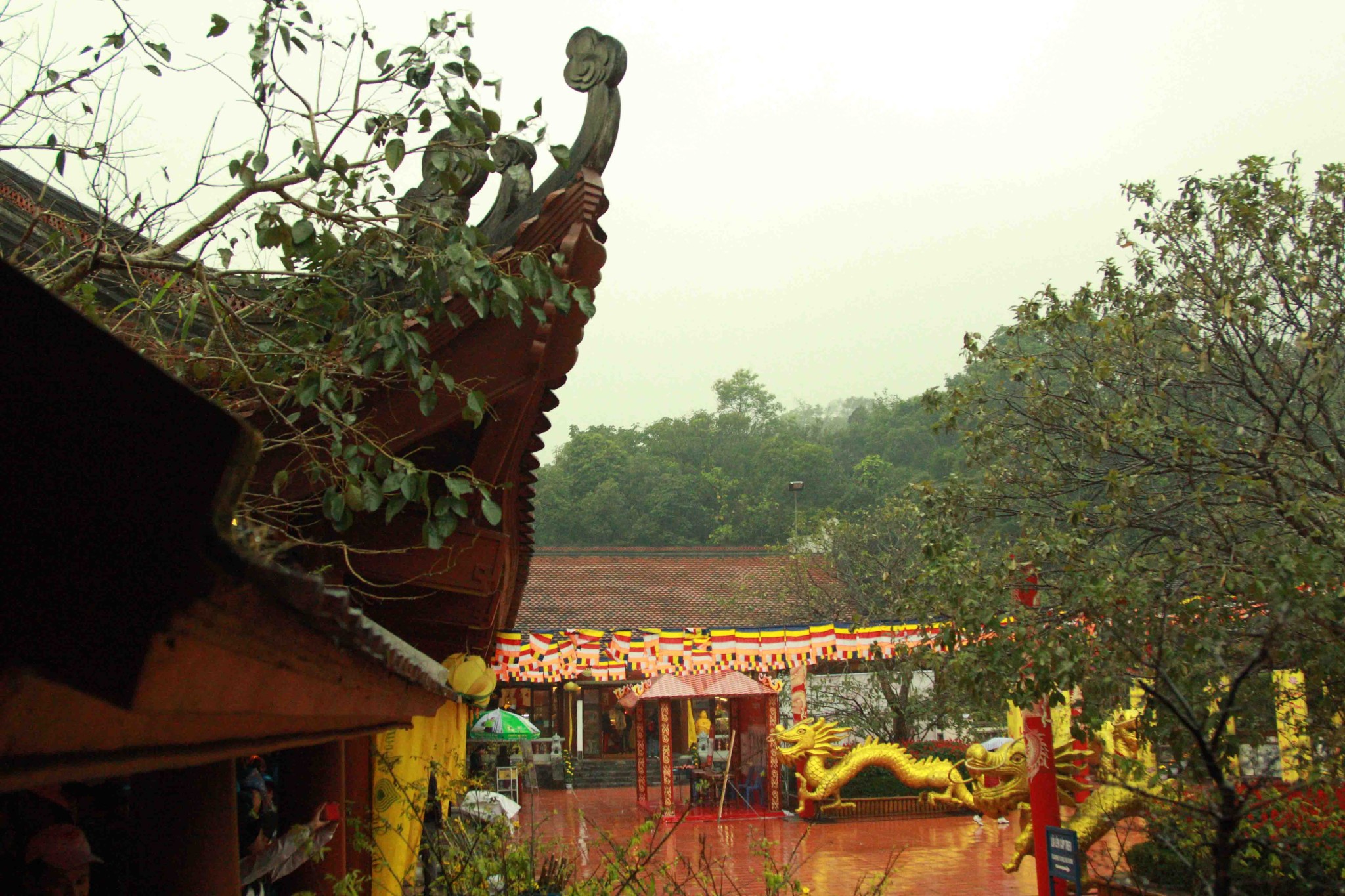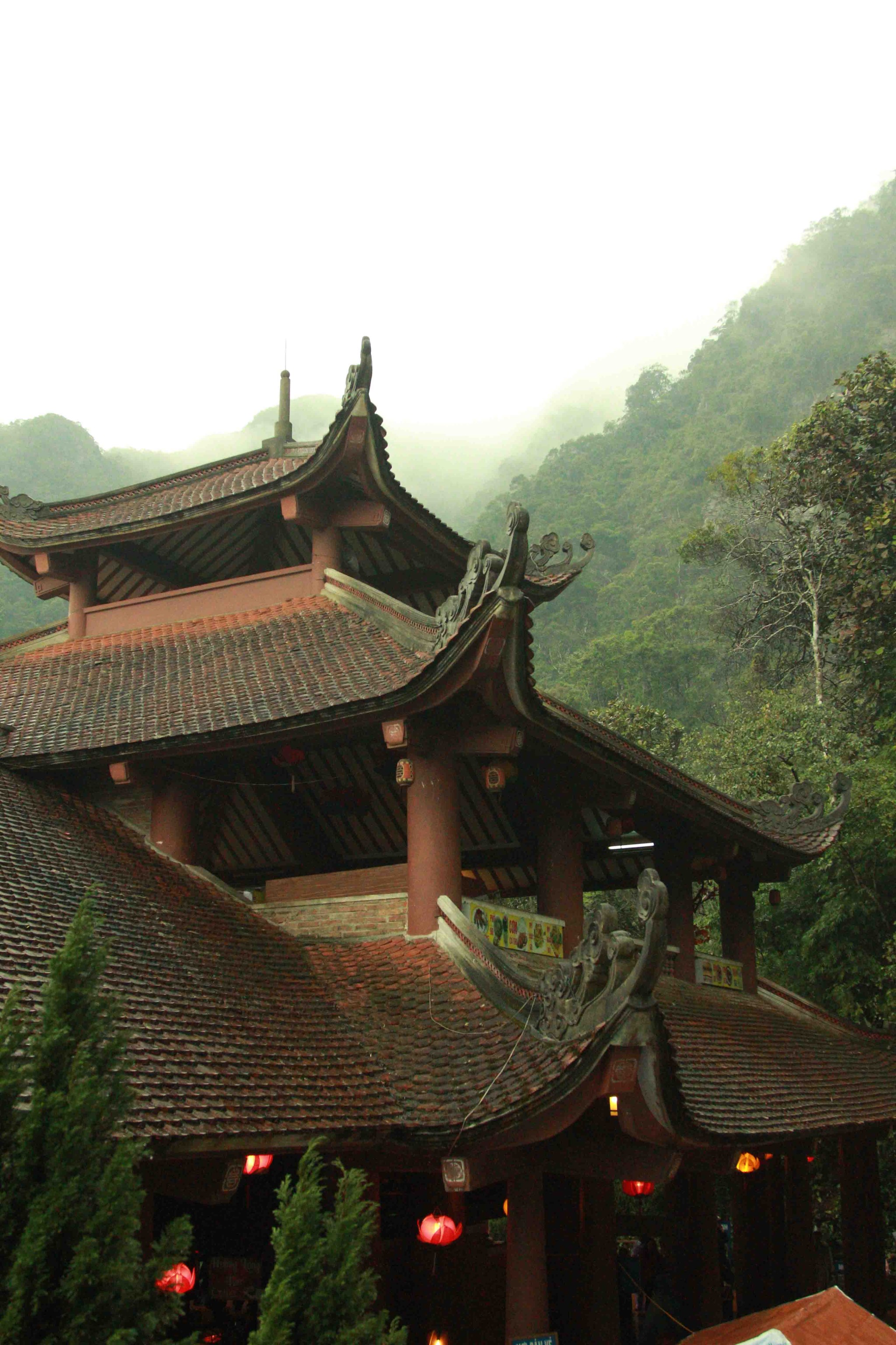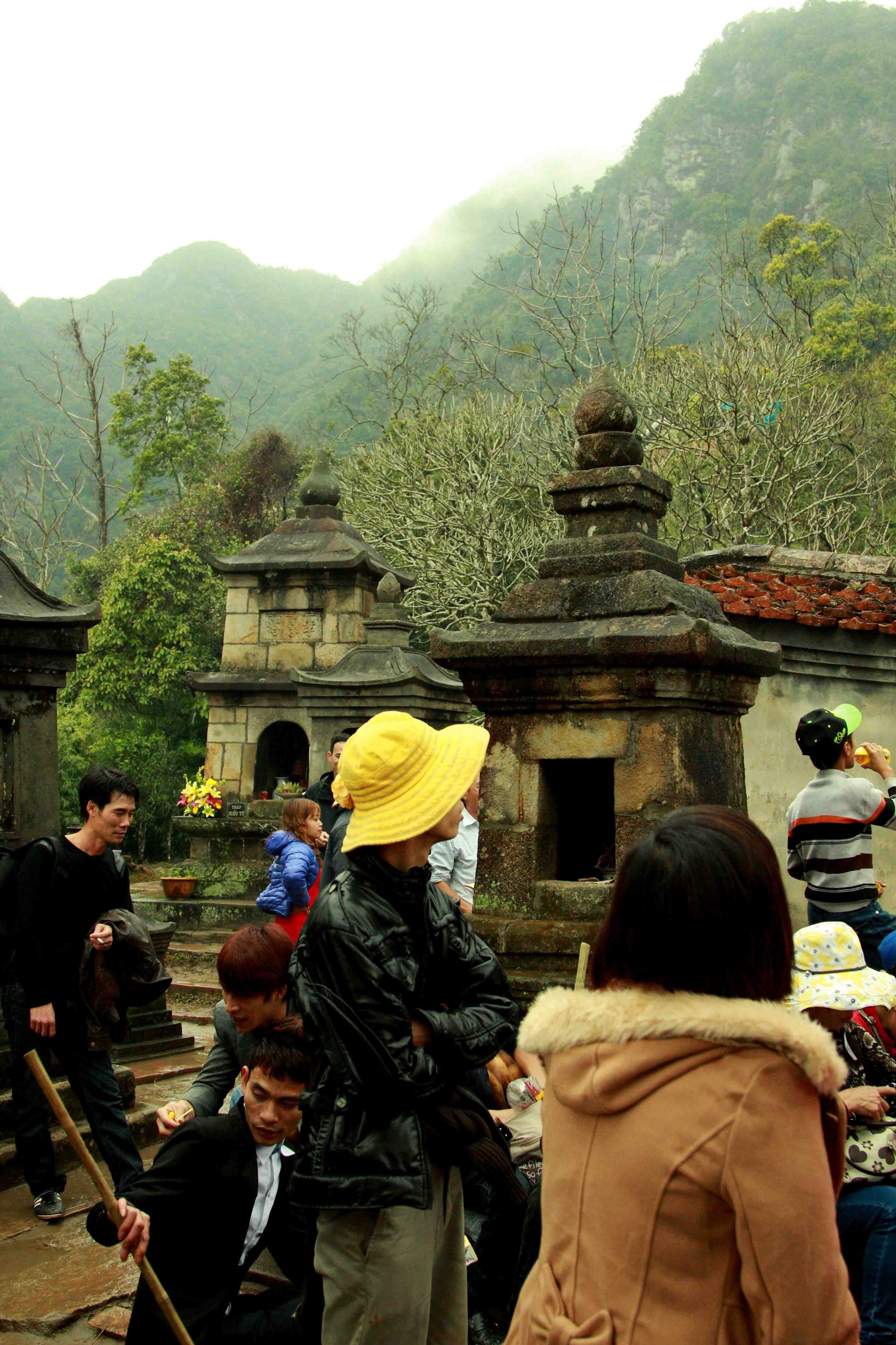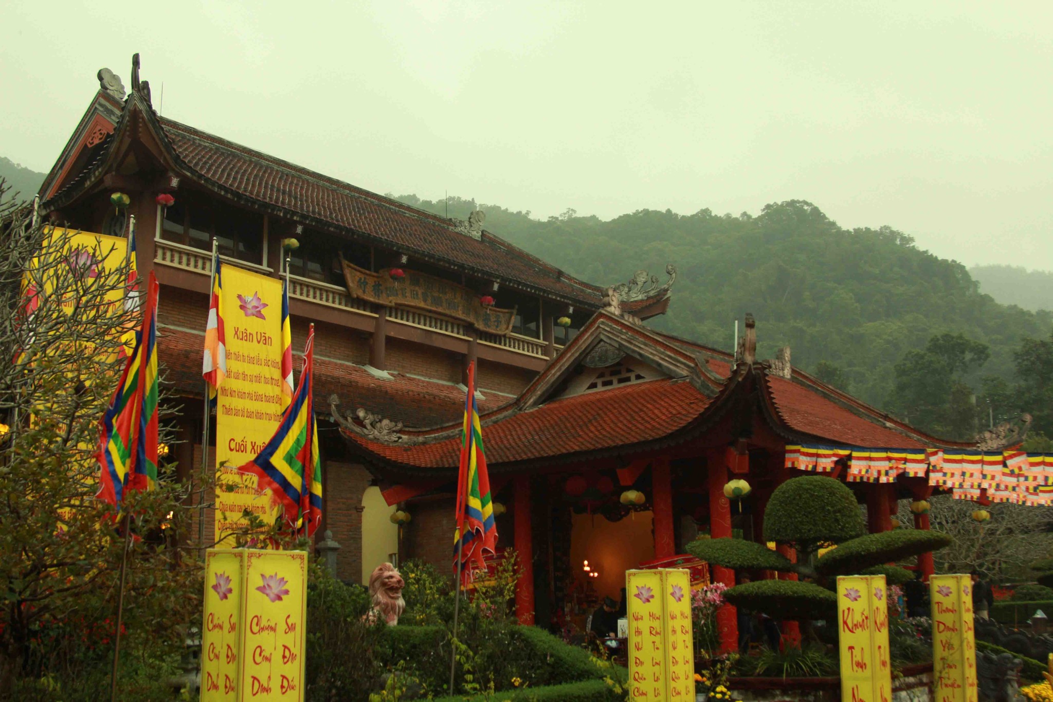 铜寺座落在广宁省东朝弧形山脉最高峰的建筑,被越南吉尼斯书评为最大的铜建筑,同时也是越南纬度最高的庙宇。这也是世界上独一无二的神圣建筑。这座寺完全用铜铸成,总重量70吨,长4.6米,宽3.6米,高3.35米。寺庙以莲花台为造型,旁边有一口仙井,常年有水。四面八方的游客到这里来,因能喝上几口仙井里的水而感到莫大的幸运。从山脚到山顶的铜寺,游客需要走 6000米的崎岖山路才能到达山峰。如果要节省时间和体力,也可以选择坐缆车上去。到了山峰,游学感觉行走在云里雾里,分别不出哪是天,哪是地,哪是人间。从铜寺向四周眺望,东北平原象一张绿色的地毯延绵张开,美丽的景色尽收眼底。
