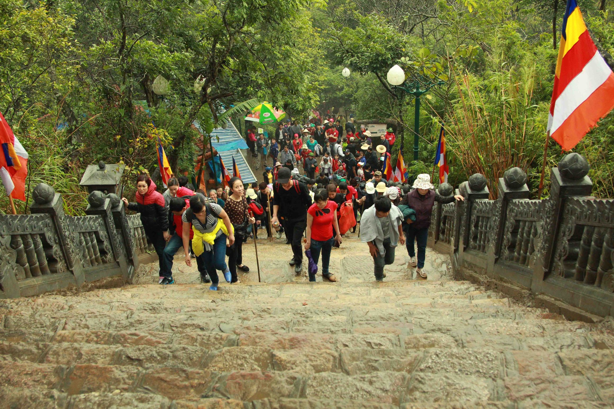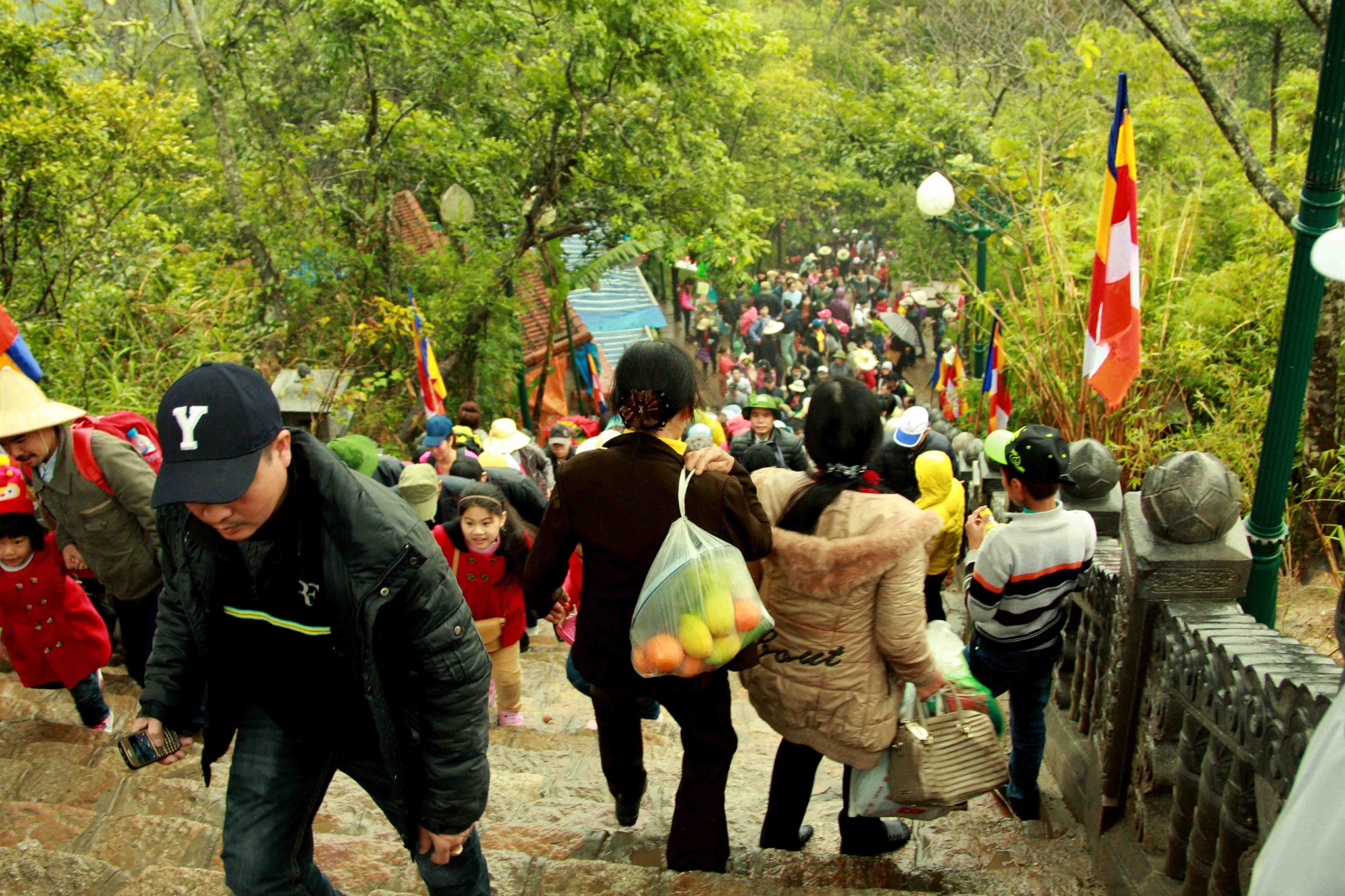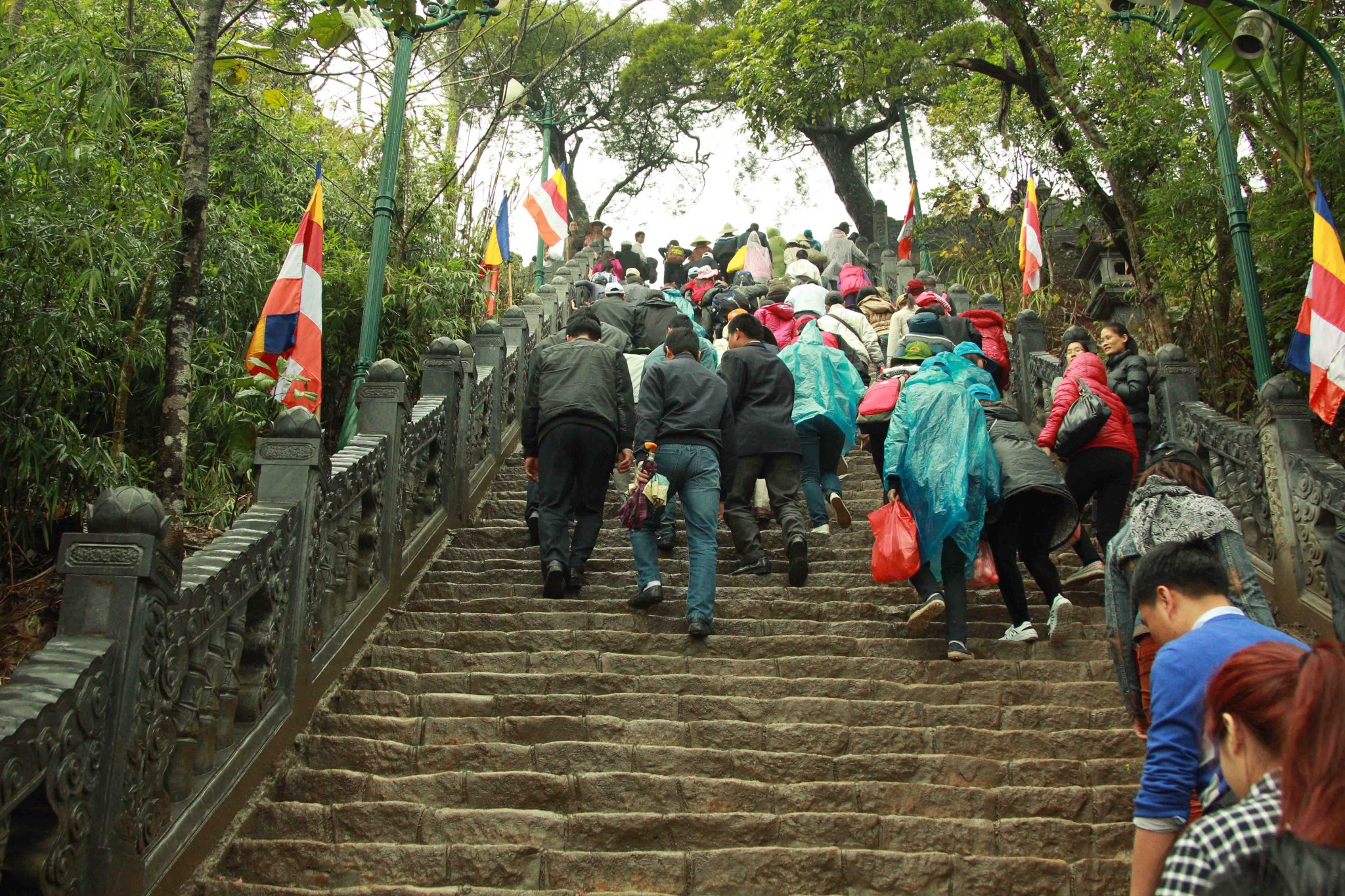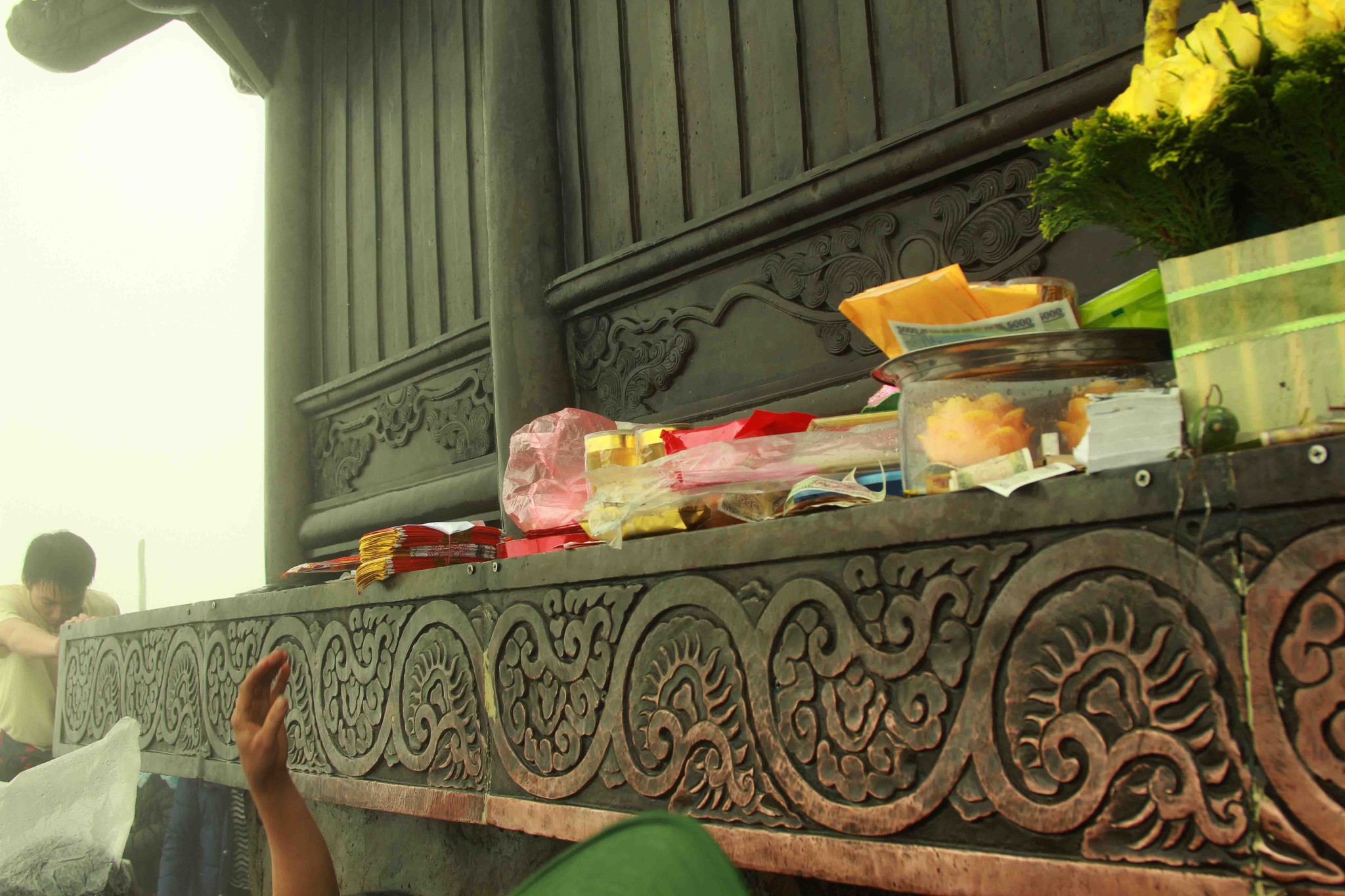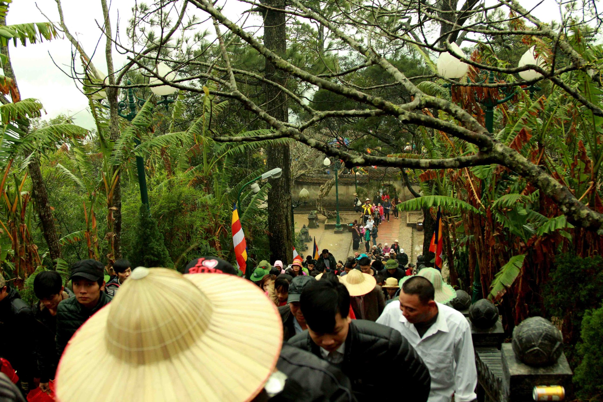 铜寺座落在广宁省东朝弧形山脉最高峰的建筑,被越南吉尼斯书评为最大的铜建筑,同时也是越南纬度最高的庙宇。这也是世界上独一无二的神圣建筑。这座寺完全用铜铸成,总重量70吨,长4.6米,宽3.6米,高3.35米。寺庙以莲花台为造型,旁边有一口仙井,常年有水。四面八方的游客到这里来,因能喝上几口仙井里的水而感到莫大的幸运。从山脚到山顶的铜寺,游客需要走 6000米的崎岖山路才能到达山峰。如果要节省时间和体力,也可以选择坐缆车上去。到了山峰,游学感觉行走在云里雾里,分别不出哪是天,哪是地,哪是人间。从铜寺向四周眺望,东北平原象一张绿色的地毯延绵张开,美丽的景色尽收眼底。