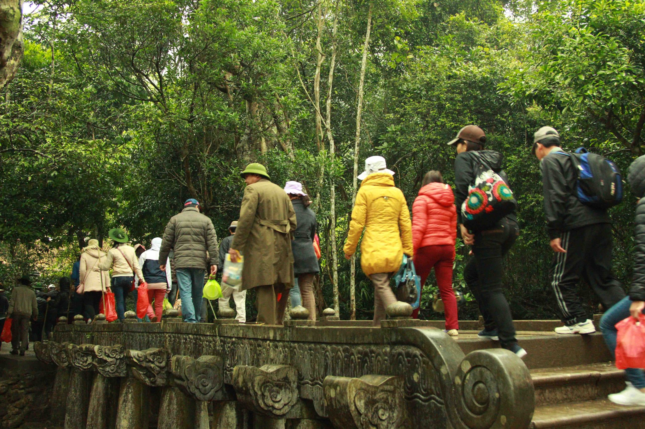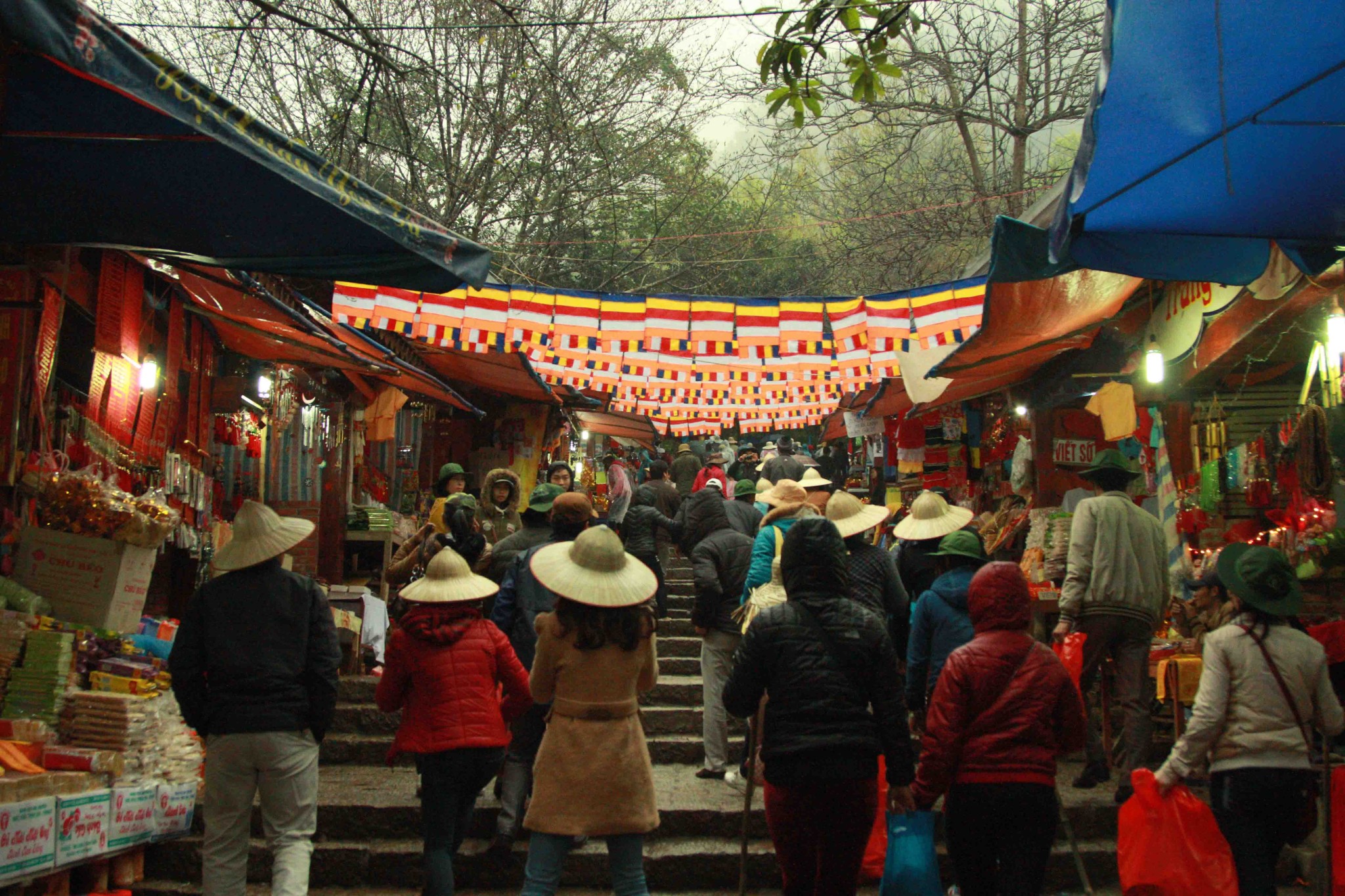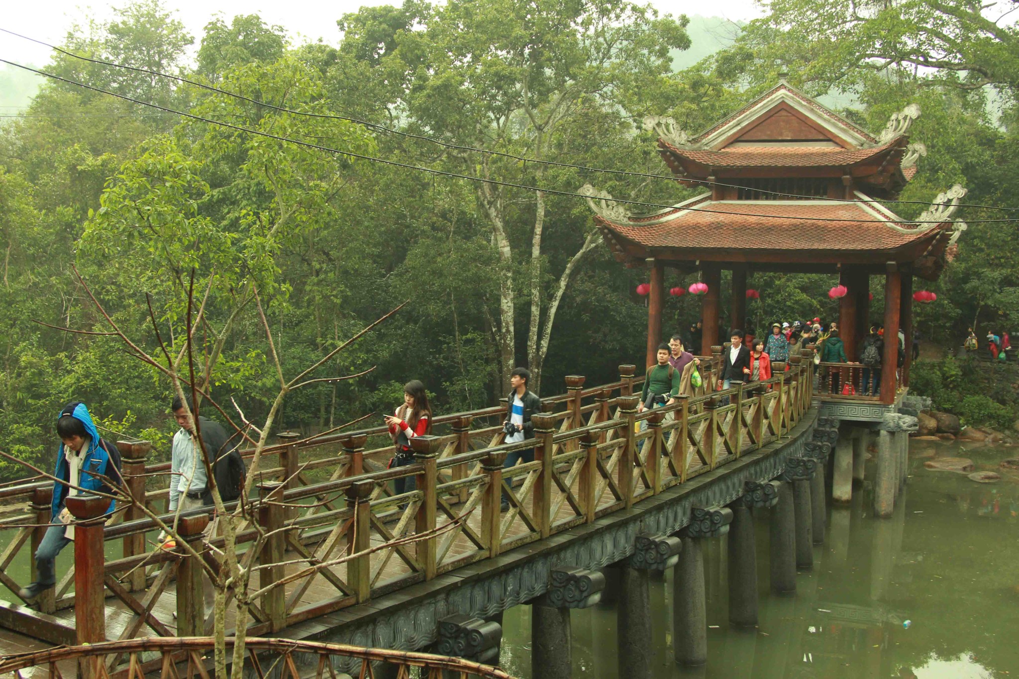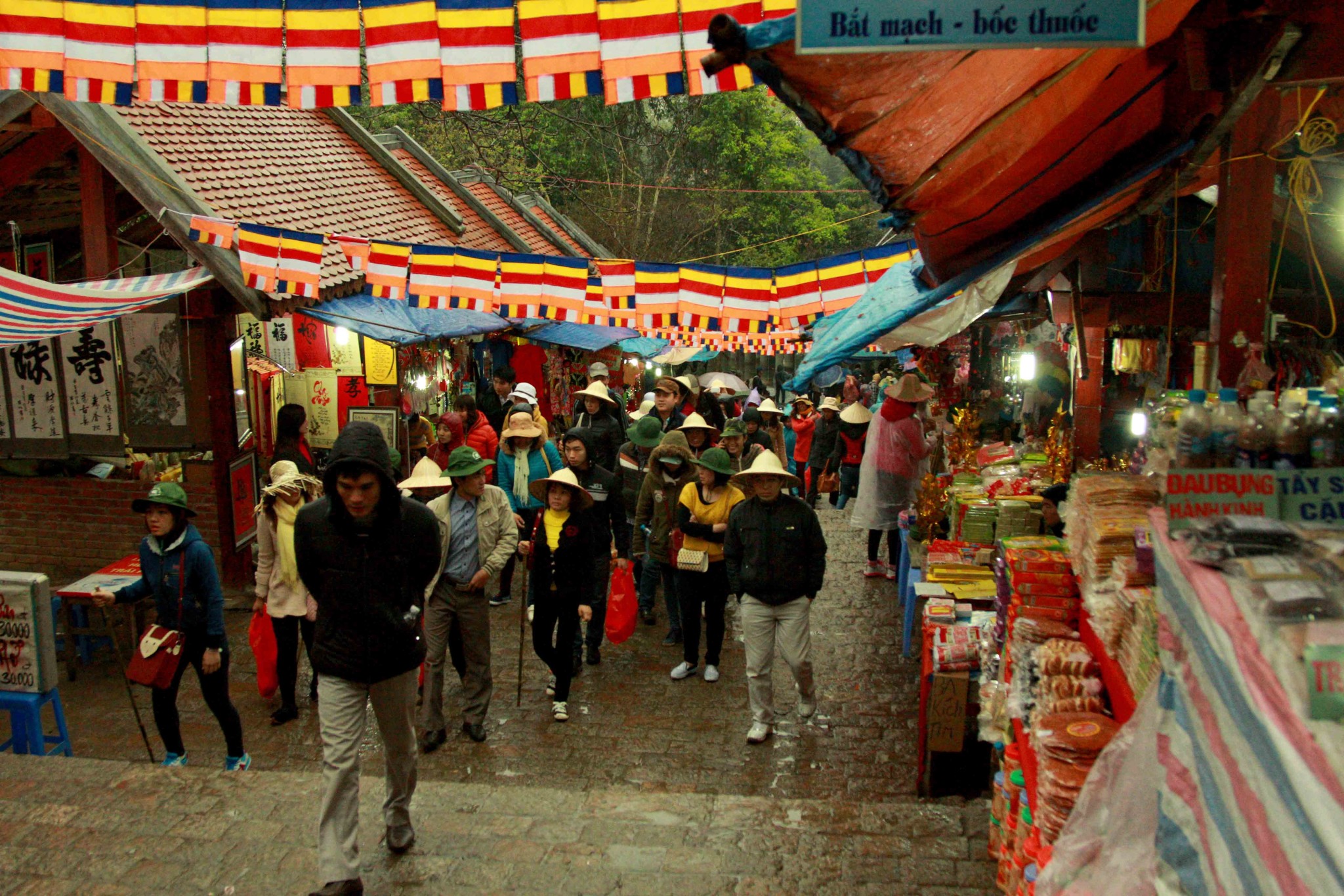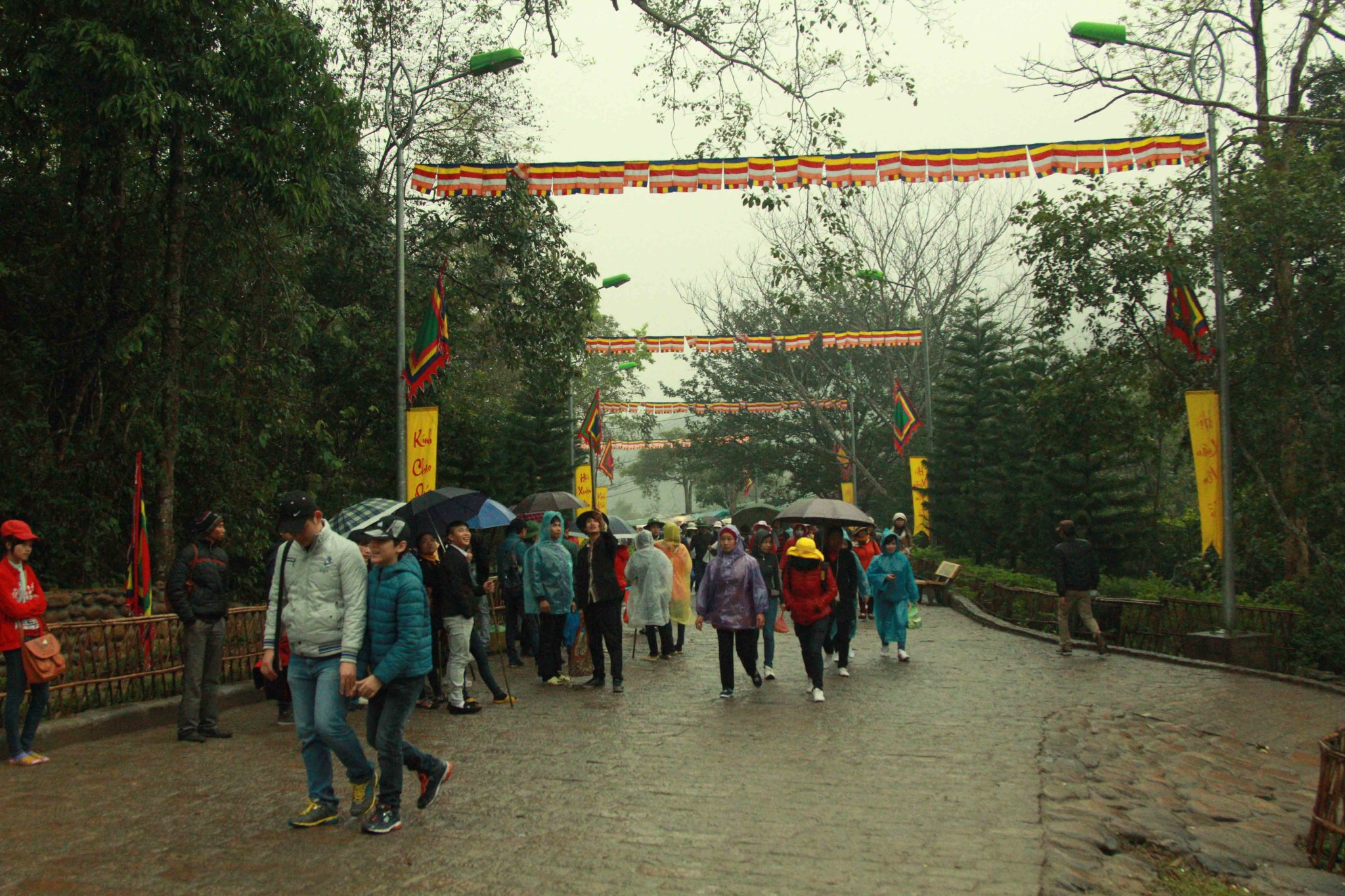 铜寺座落在广宁省东朝弧形山脉最高峰的建筑,被越南吉尼斯书评为最大的铜建筑,同时也是越南纬度最高的庙宇。这也是世界上独一无二的神圣建筑。这座寺完全用铜铸成,总重量70吨,长4.6米,宽3.6米,高3.35米。寺庙以莲花台为造型,旁边有一口仙井,常年有水。四面八方的游客到这里来,因能喝上几口仙井里的水而感到莫大的幸运。从山脚到山顶的铜寺,游客需要走 6000米的崎岖山路才能到达山峰。如果要节省时间和体力,也可以选择坐缆车上去。到了山峰,游学感觉行走在云里雾里,分别不出哪是天,哪是地,哪是人间。从铜寺向四周眺望,东北平原象一张绿色的地毯延绵张开,美丽的景色尽收眼底。