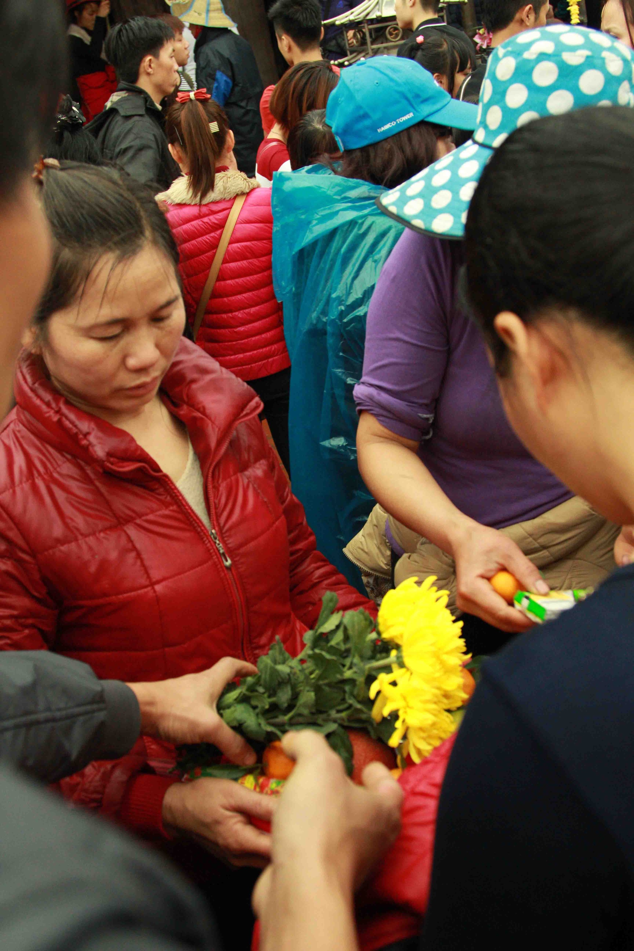 排队准备坐缆车上去。