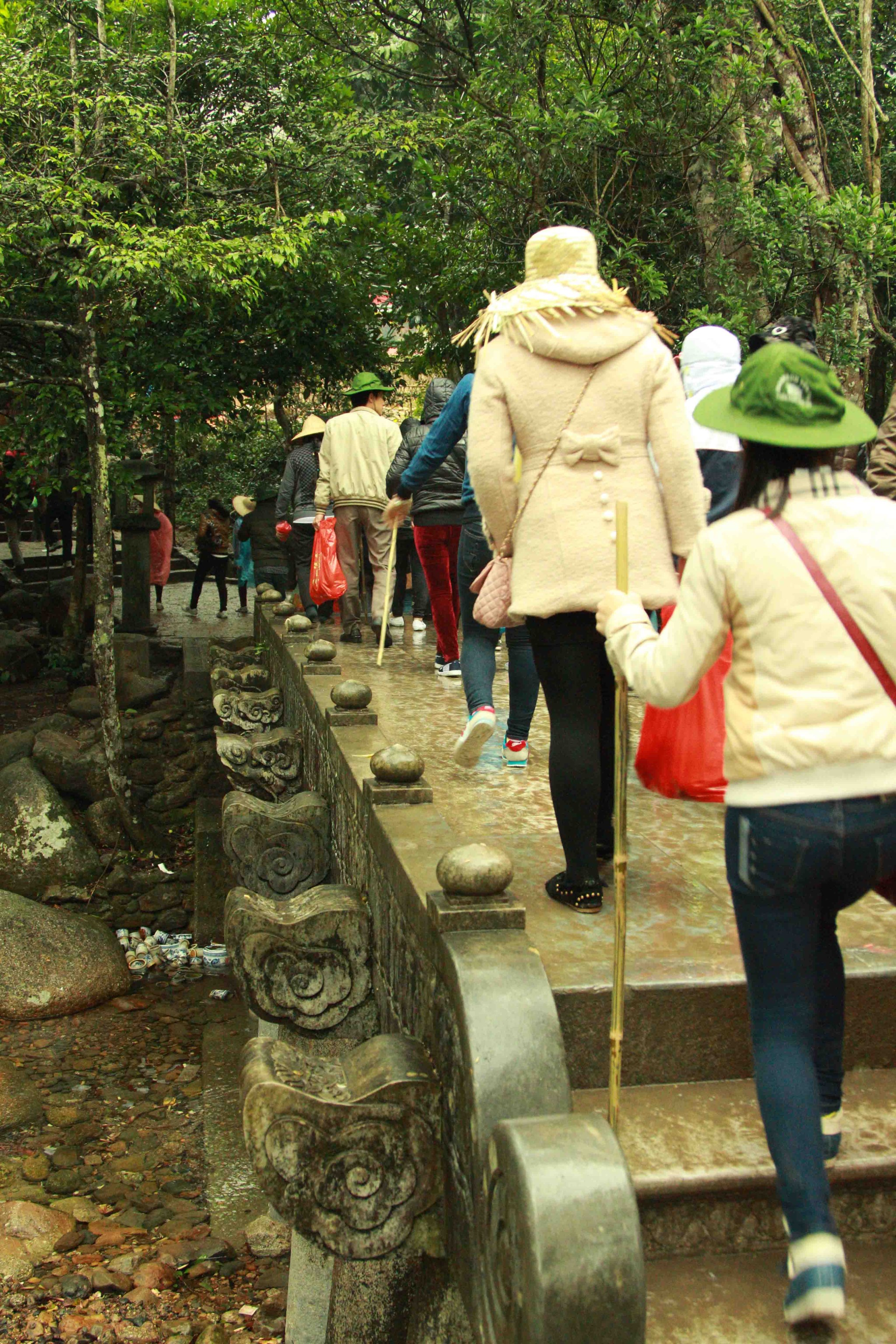 好多人手里都准备了拐杖