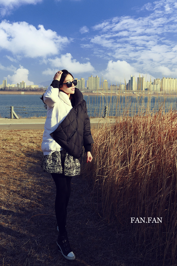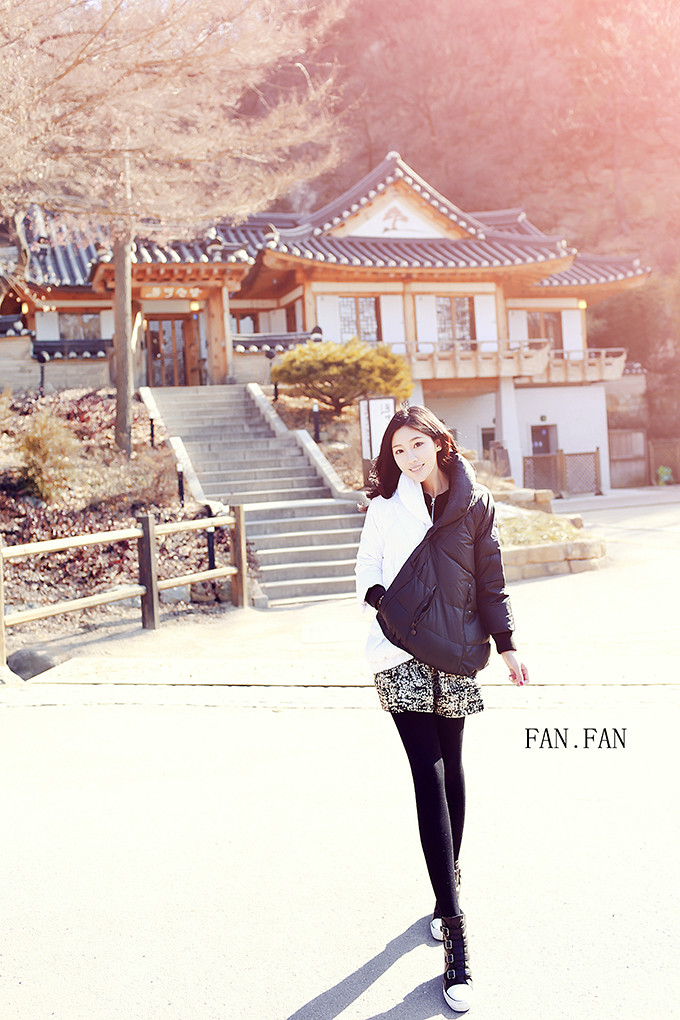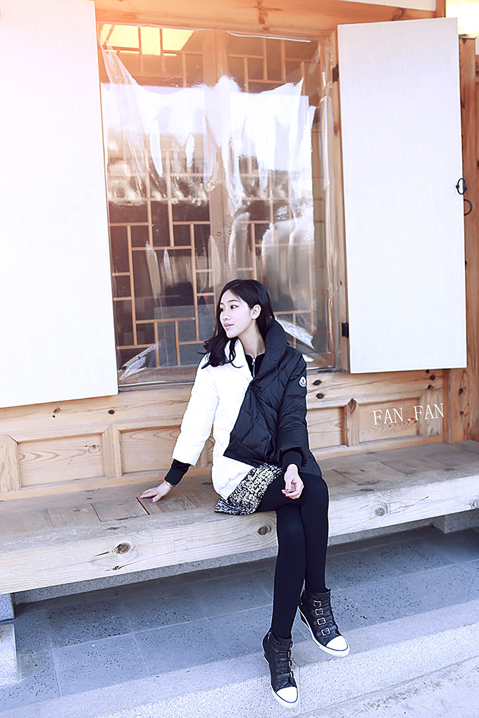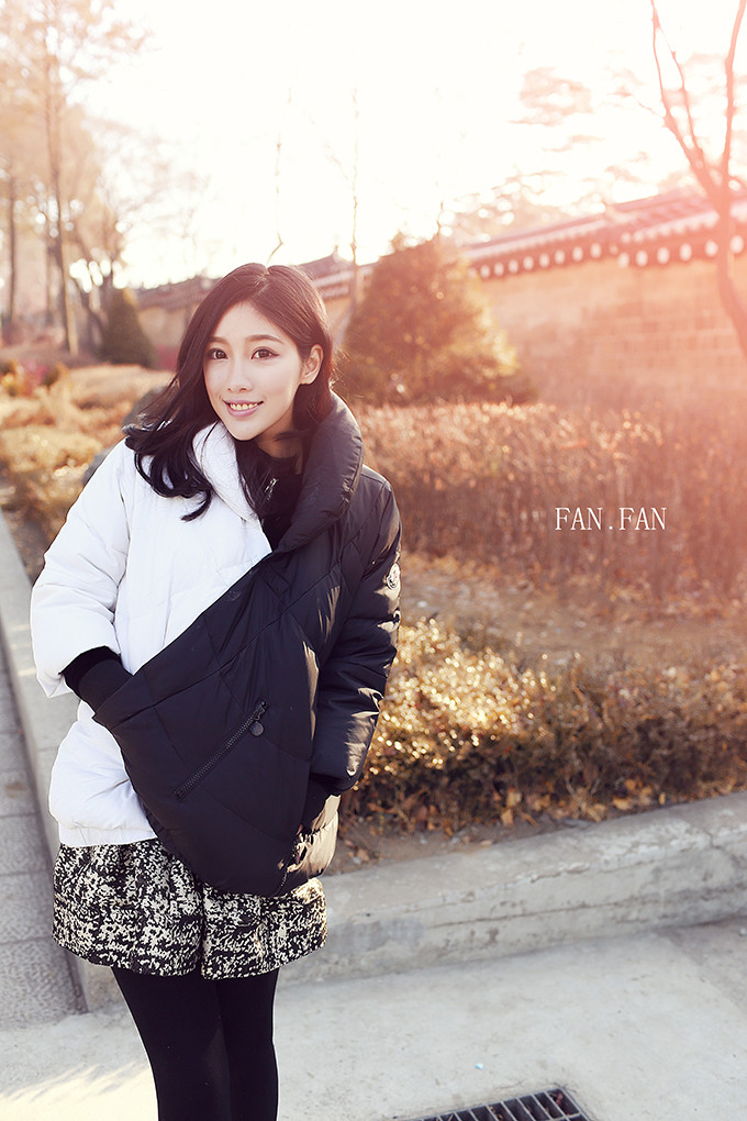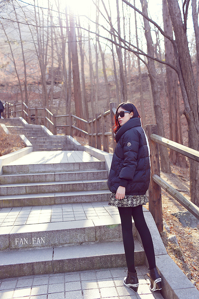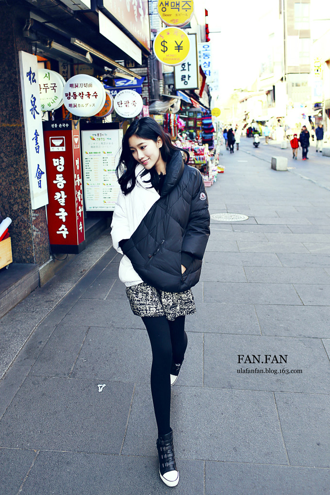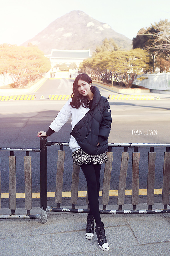 穿的是很喜欢的黑白撞色羽绒服,很保暖
