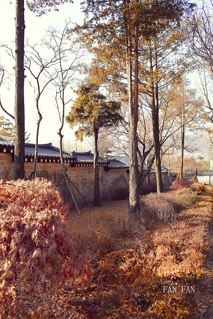 出租车到了景福宫 附近,风景很美,大家就下车步行