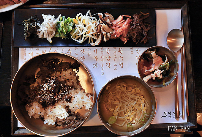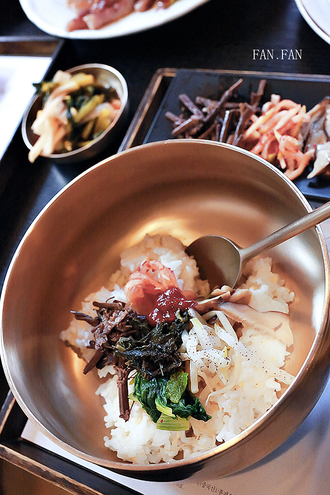 正餐上齐啦,每个人面前都有一份最正宗的韩式拌饭套餐