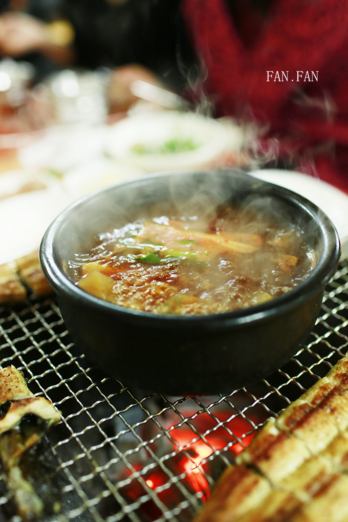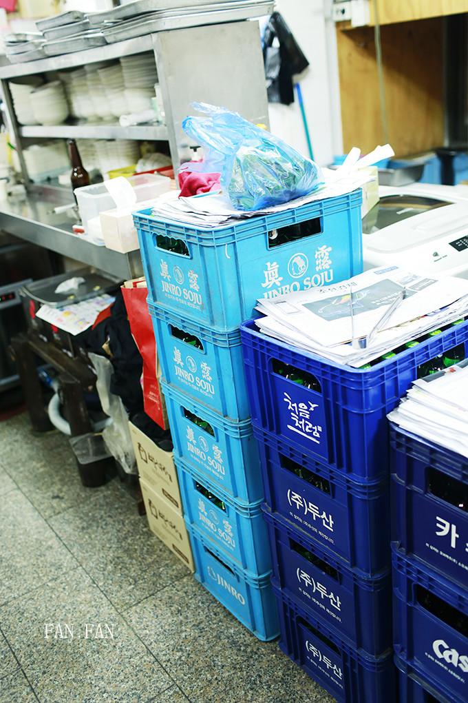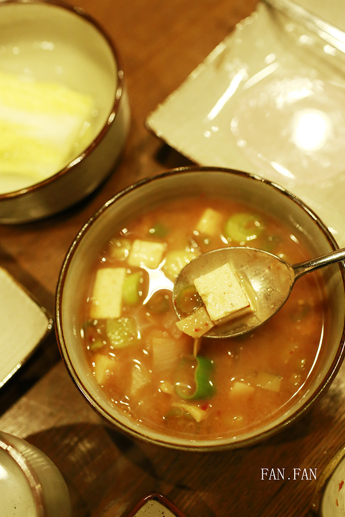 旁边是韩剧里都会看到的豆芽汤,泡菜是自助的,可以无限量添加