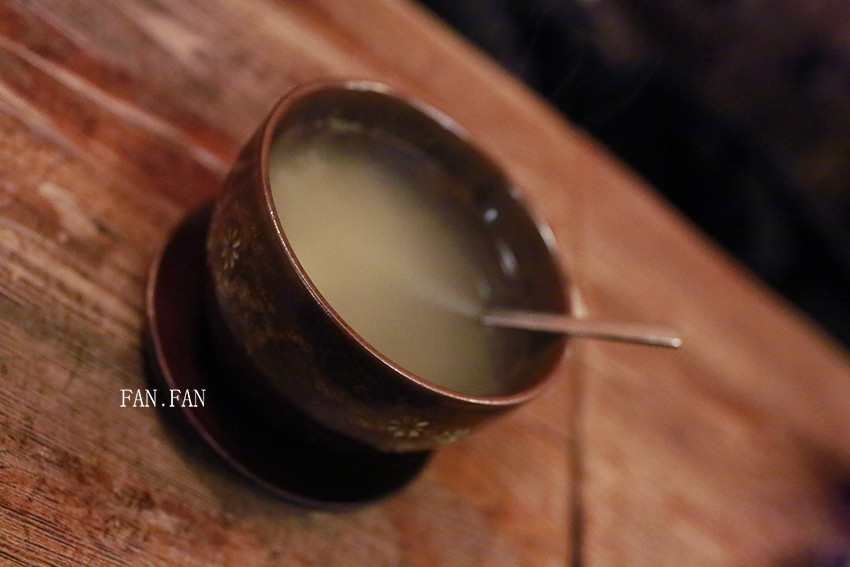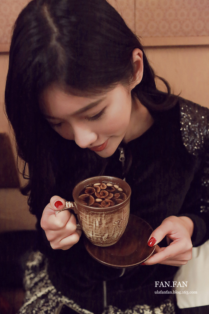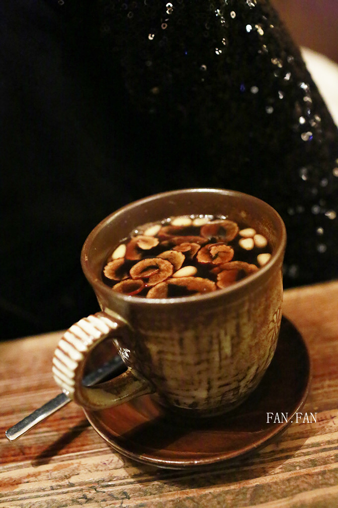 饭饭喝了一杯韩国 传统的草药茶,味道还不错