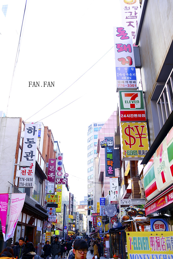 从明洞地铁站下车后,就能看到明洞大街,两边都有胡同