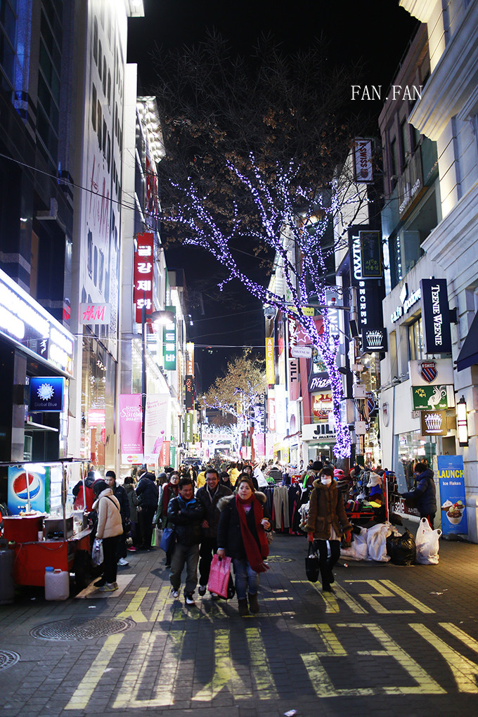 晚上逛街的人很多,耳边充斥着韩语、中文、英语等等各类语种