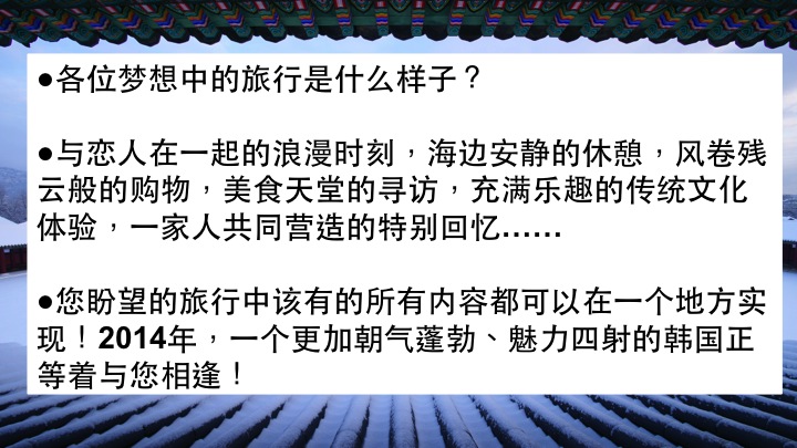没想到过年和爸爸妈妈出去玩了一圈,路上接到济州岛 的电话,说他们决定和韩旅局一起赞助我们做这次活动,让楼主回成都 和他们联系。