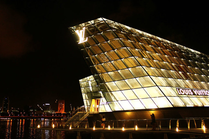 犹如一架船一样的LV旗舰店,屹立在港口。