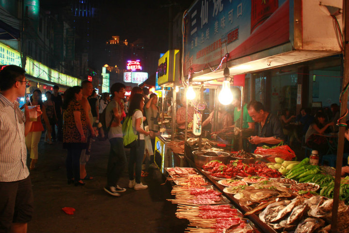 爽爆了的中山 路小吃街。只能怪胃太小,之前为了在越南 穿比基尼,节食了一阵子,所以能狂吃狂喝的感觉实在太好,。12点以后,南宁 路上到处都是夜市,很奇怪的是,要价都奇低,原来这里都不兴喊价降价的,直接是卖价。娘哎,还没走出境门,就开始采购了。。。这个咋得了!