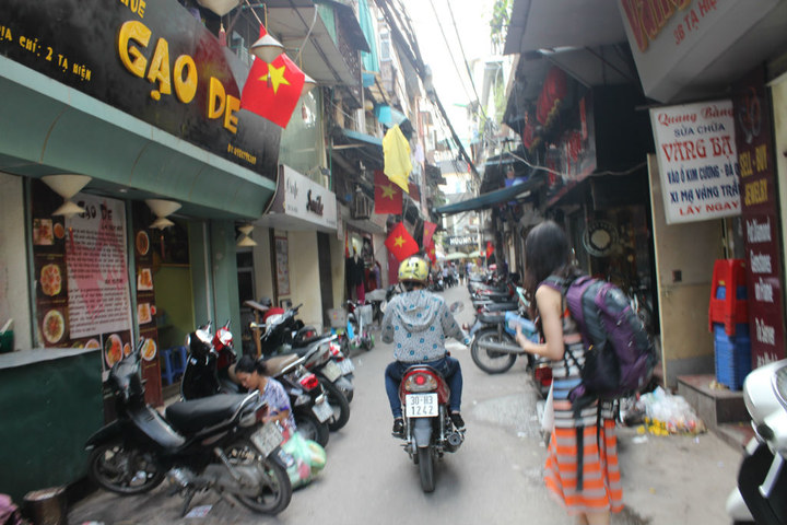 和红豆同学打车来到河内 云集背包客云集的老街 区 。在新咖啡换了票后,留给我的只有1个半小时时间,6点就要坐SLEEPING BUS 去顺化 。而我没有用这一个半小时去传说中的还剑湖,而是很执着地在众多小巷中穿行寻找当初在攻略中看到的一个叫XIAO YEN 吃糯米饭的店。