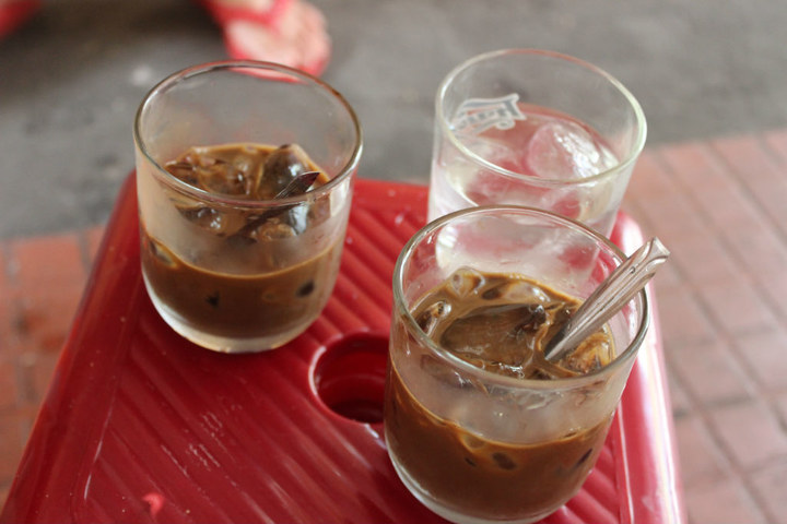 和红豆准备去吃点东东,第一次喝道了传说中的越南 滴漏咖啡。。。。加了炼乳。。太好喝了,,,什么都都不说了。。。太好喝了。。哎不予评论,一般价格在10K算正常。