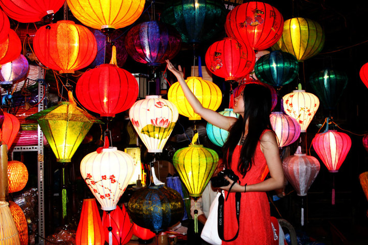 接着就到了最繁华的的小夜市,看到了会安 最出名的灯笼。。。好漂亮