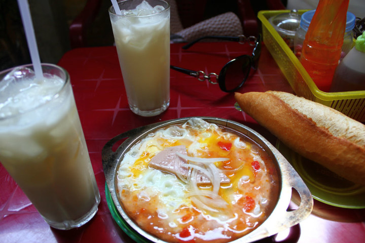 和当地人一起吃的早饭,他们的早餐真有营养,冰豆浆,煎鸡蛋,还有法棍。15K/人