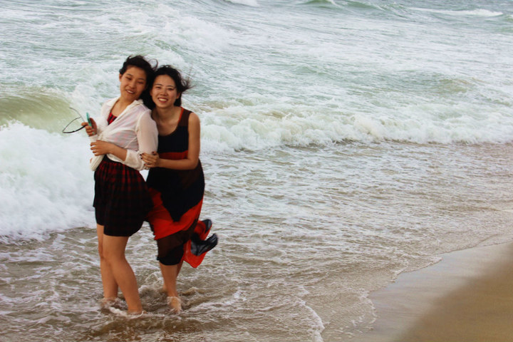 之前有个插曲,红豆昨天莫名其妙加微信联系到两个在会安 的中国 男生,他们貌似在会安 住在一个有私人沙滩的酒店,邀我们去沙滩玩。此前我并不知情,但是微信上有个附近的人也加我,回复后,结果是同一个人。(微信!不是陌陌。。。不要想多了)红豆跟他们约得是上午去,但是。。红豆一直舍不得跟新加坡 yijun say goodbye。所以,拖到中午。。。终于和那两兄弟分别了。