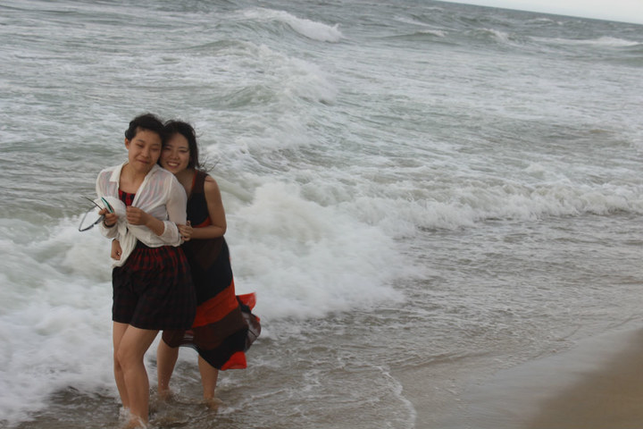 这时的风超级大,没见过这么大的浪,我和红豆都很兴奋滴。。 尖叫着跑到海里去,。。。。