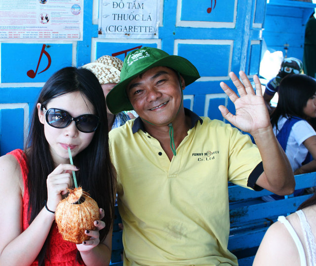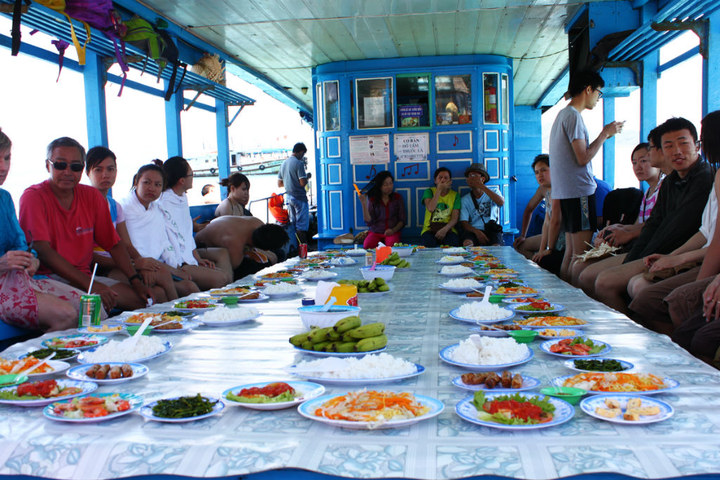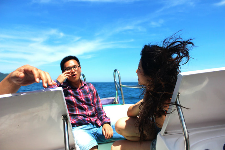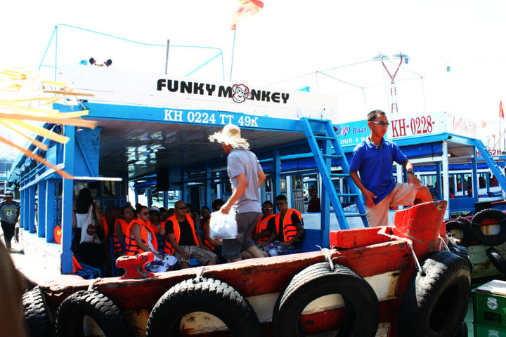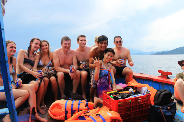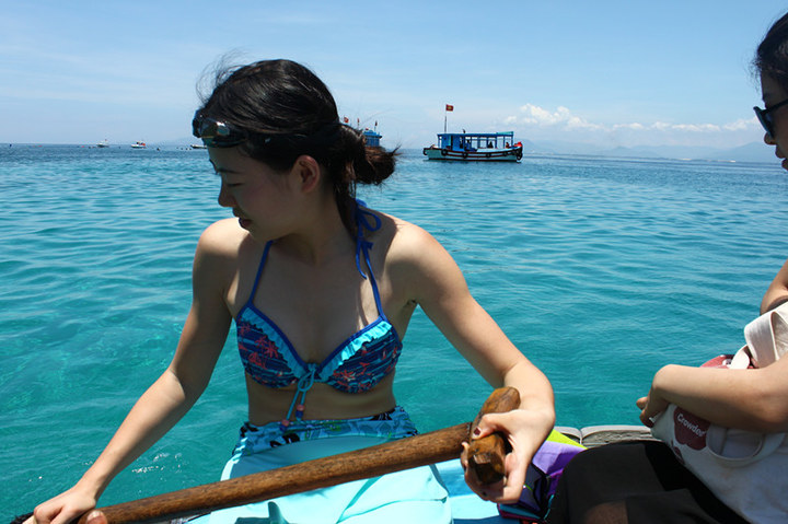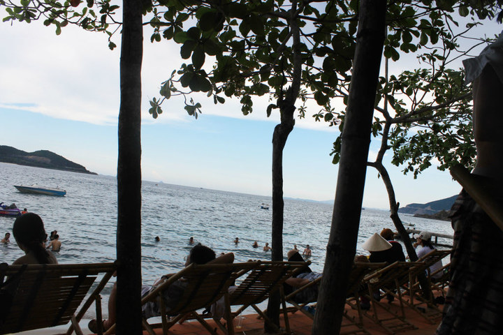 上午六点半到达芽庄 。。。下了车 同样懒得找宾馆,一个开摩托的大叔,开价10美元,拉我们去住的地方,于是就跟他走了。。看到房间,比较一般,但是旅店的招待姐姐很热情 非常好,于是我们就住下了。8刀一天。跟招待姐姐订了4个人的四岛游。四岛游游是芽庄 的特色,非常好玩,也很便宜。一般是6刀一个人,我被要价7.5刀 算了,也懒得降价。。。OKOKOKOK.....然后就坐等,阿亮阿军 下火车。。。。。