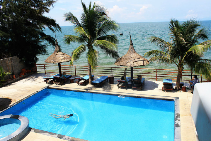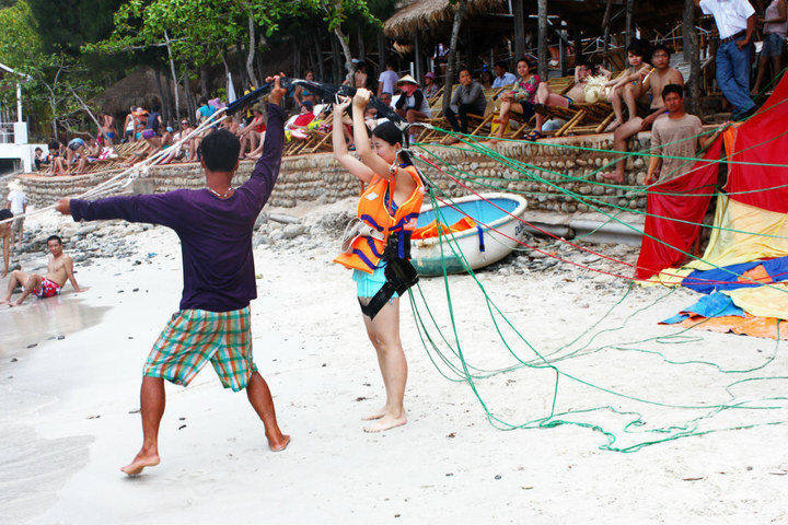 然后天空开始变天,狂风大作,他俩一人一个摩托载我们去了他们住的酒店。。。果真很爽的私人沙滩啊。。。