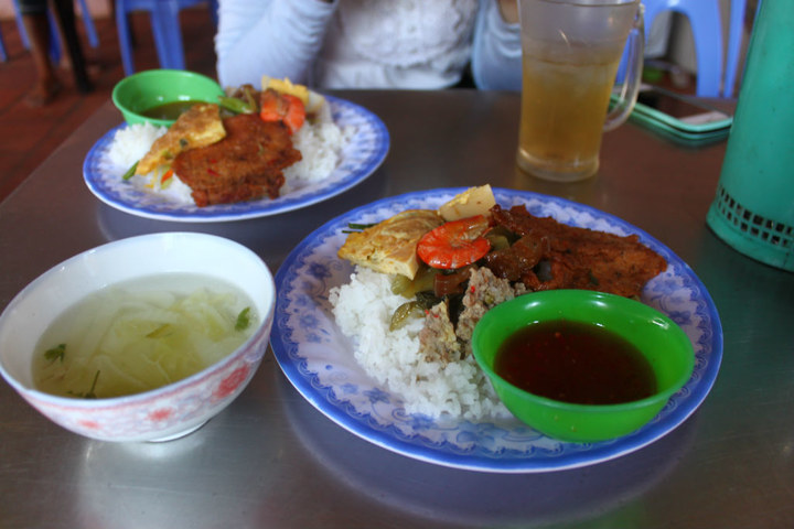 骑回了渔港 ,实在是不想再去找仙女溪了,渔港 附近有很多吃 的,各种小摊位,红豆买了一个大榴莲,很香米之要人民币9元,而我就学着当地人的样子,和他们一样,坐在小板凳上,边吃,摊位的阿姨会边给你的碗里加 各种菜