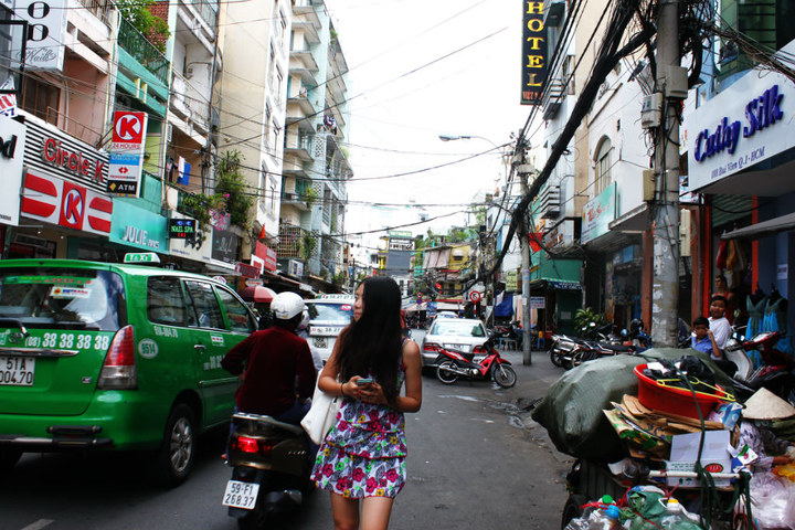 4个小时候,中午时分,大巴抵达胡志明,传说中背包客聚集地范五老街 第一次出现在我的眼前。嘈杂的街道,电线,摩托车笛声。这是东南亚 的样子。