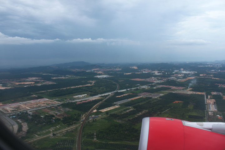 最后的最后,在吉隆坡 转机。。。乘上熟悉的亚航。起飞。最后一张照片,平坦的马来西亚 土地。