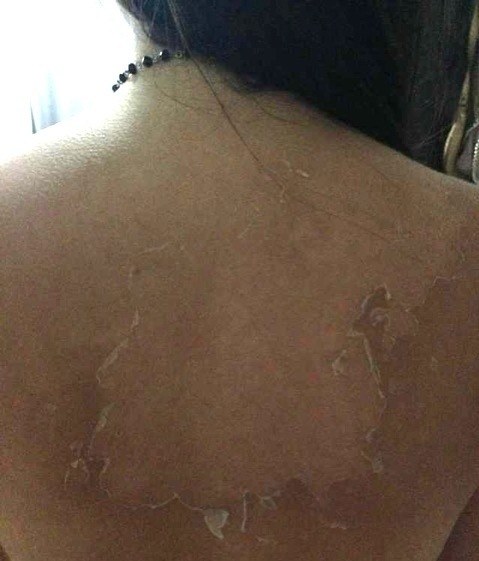 回来后,被晒的黑焦焦的美背。。。。