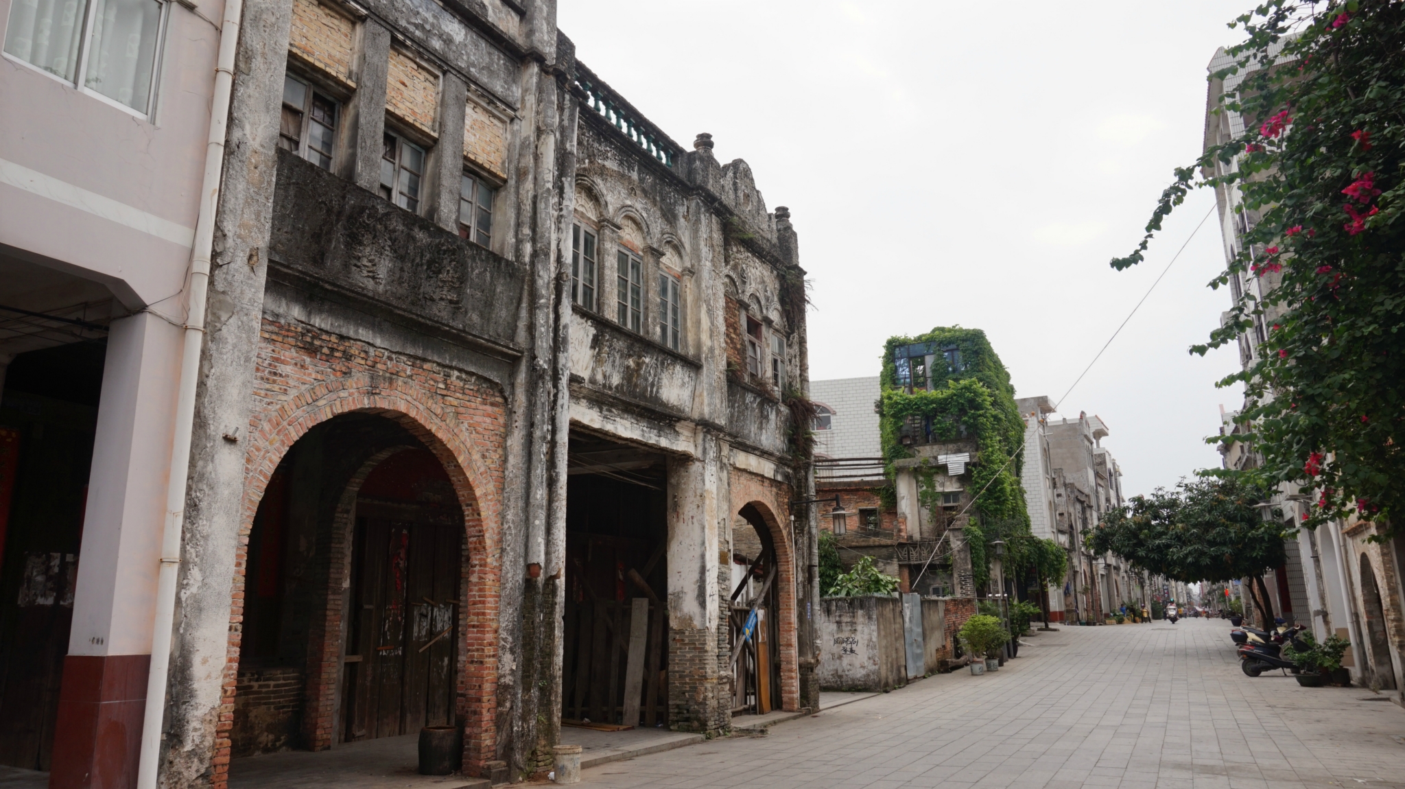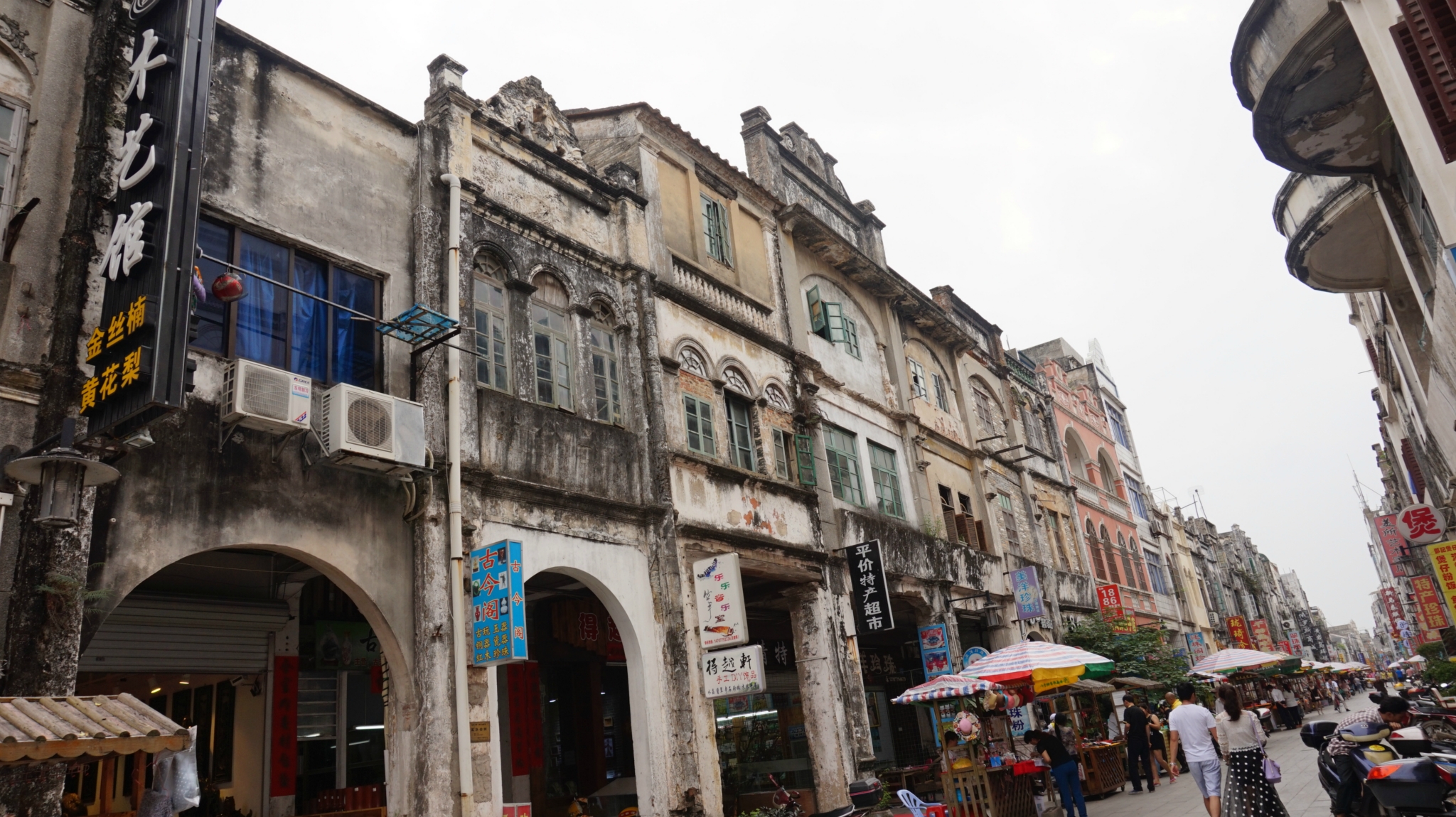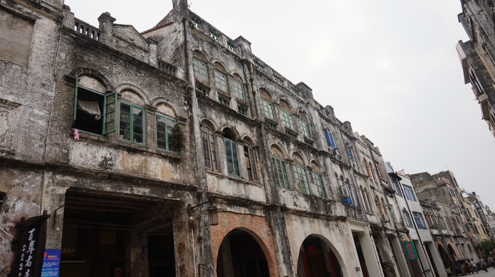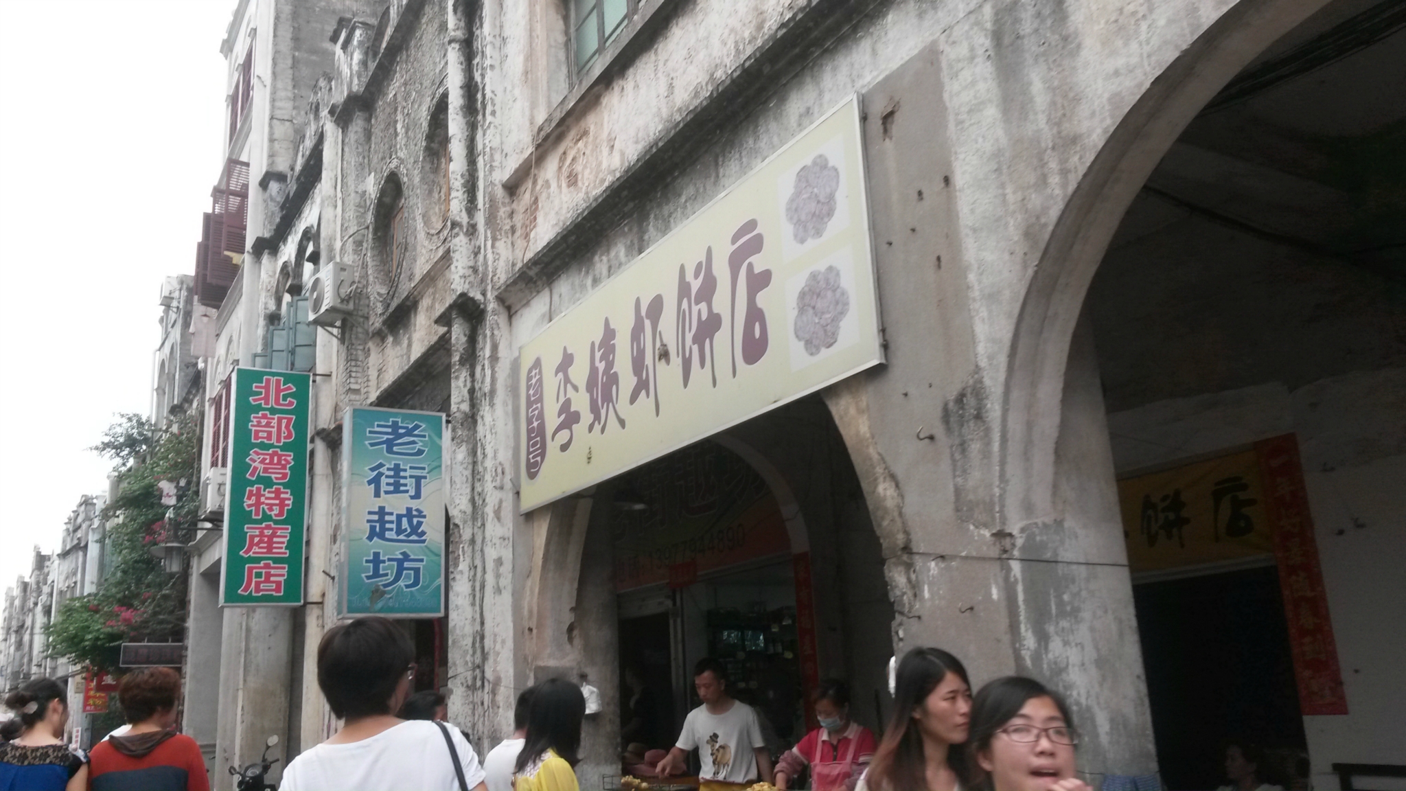 5分钟参观完毕,去找/travel-scenic-spot/mafengwo/65633.html{老街} ,问了几个人找了几遍也没找到,后来一个大姐是在看不够去带我走的,小胡同弄的像谁家门似的。/travel-scenic-spot/mafengwo/65633.html{老街} 真的很老不宽,破破烂烂的,人不少,房子不少还有人居住呢,仔细看不少房子还真挺漂亮的。在基督教堂对面就是李阿姨虾饼店了,有排队的人,好找,但不需要排多久,我花块钱买一个虾饼一串鱿鱼丸,挺好吃的,虾饼没有我在/travel-scenic-spot/mafengwo/10132.html{厦门} 吃的虾饼的虾多,但饼里边有小香葱,嚼着香香的。