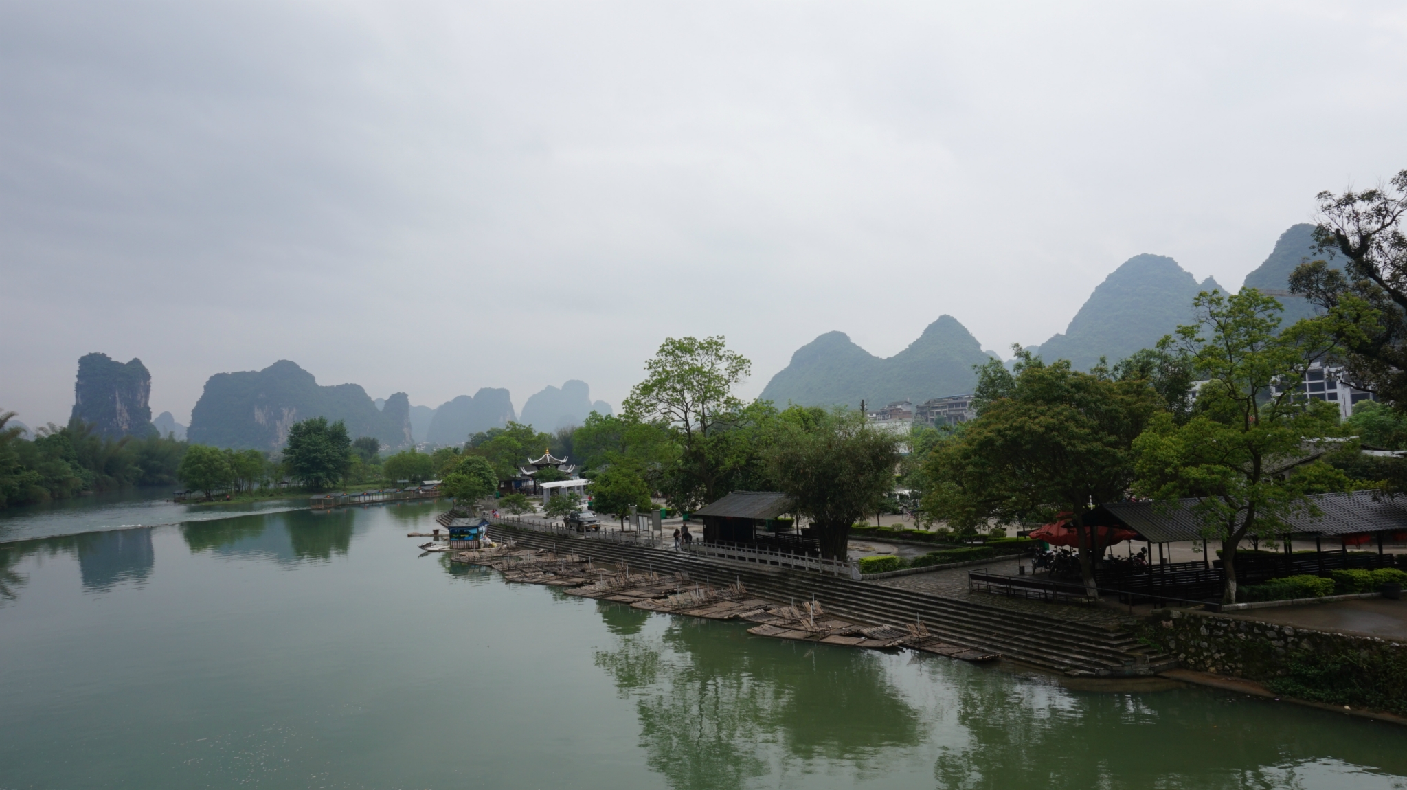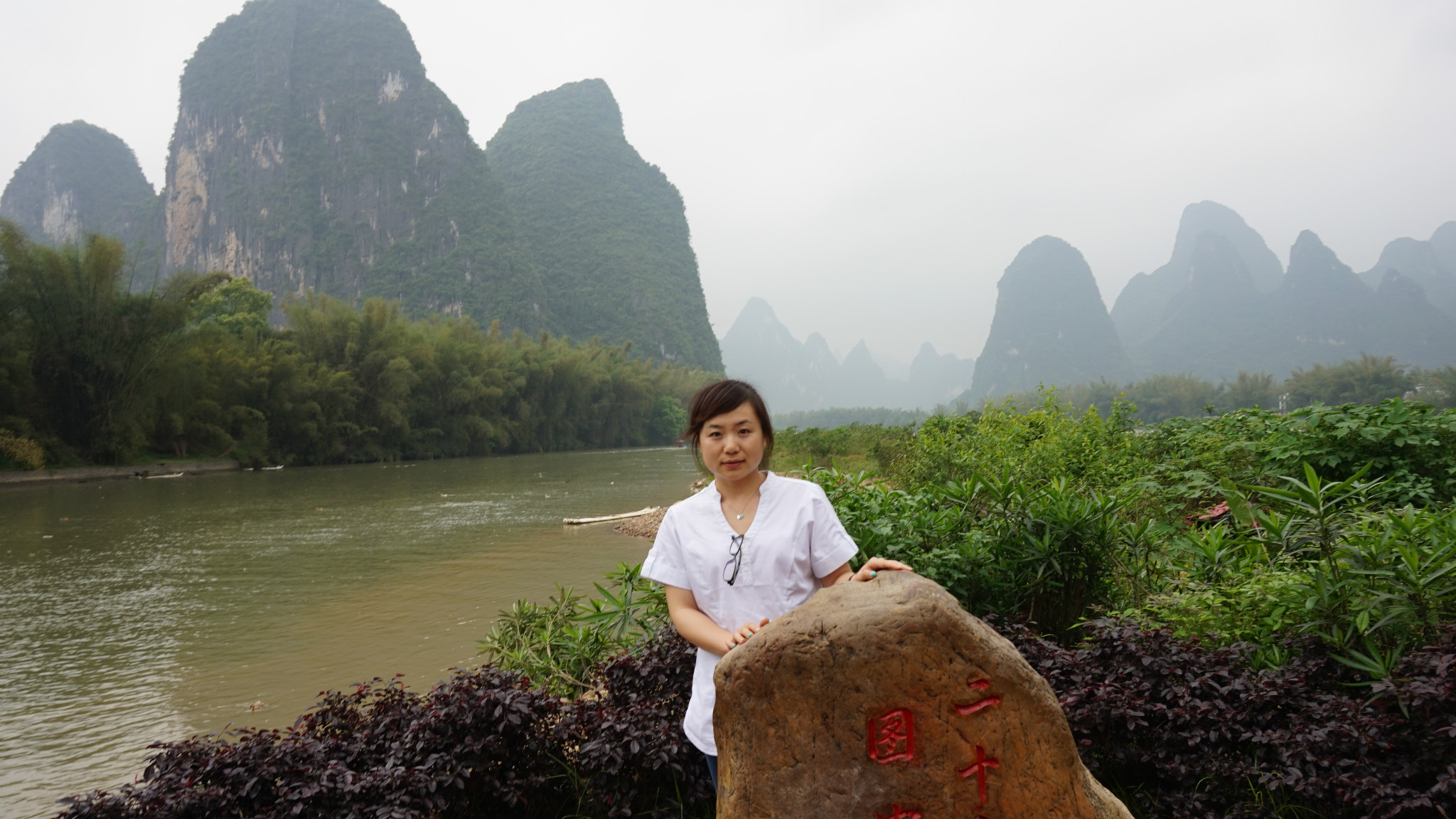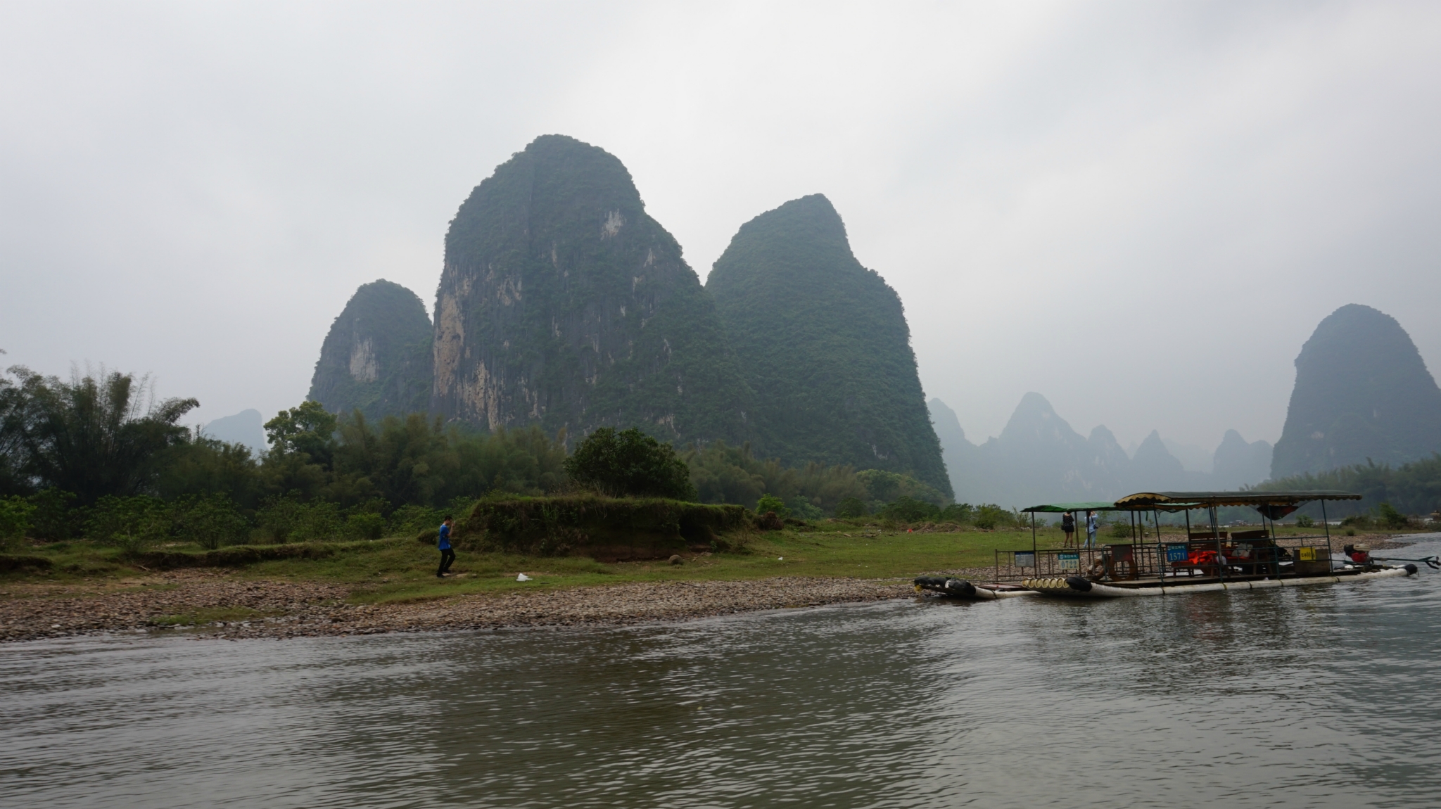 吃完饭看天气尚可(因为天气预报报告一直有阵雨),我们就打算去兴坪漂流,看看“20块钱”,去兴坪的车是从汽车南站出发的,我们从/travel-scenic-spot/mafengwo/10095.html{桂林} 下车的那个汽车站叫汽车北站,北站到南站有当地的特色公交车,黄色的像景区里边的电瓶车,1块钱一位,自动投币不设找零,我们就是走到北站在坐公交车到南站,然后坐到兴坪的,一人7块钱,下了车就有许“拉客”的人,让你从他们那里直接买票漂流,不要进去买票啦,说他们可以安排我们2个人一个竹筏,不用和人拼船也不用加价什么的,后来我们同意了,游半圈到九马画山,一人95块钱,不知道正规的多少钱,应该也差不多多少吧,他们会代我们在门口买票,然后票给我们,可以免费乘坐景区内的电瓶车,景区内有一些私人的摄影师,租了一个点可以免费给游客照相,小照片是免费的,如果觉得照片可以的话可以洗一张大的塑封,价格15元一张,如果不满意一寸的小照片真的是免费的,我们就照了两张,砍价到20两张,吼吼~不贵了吧。