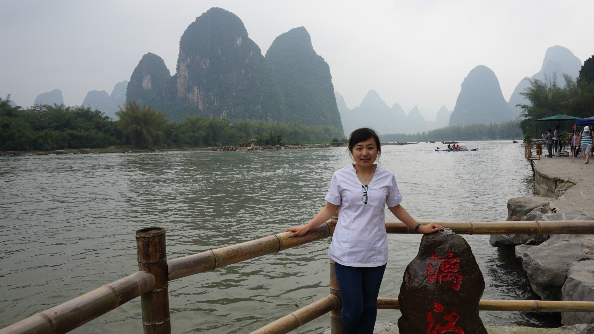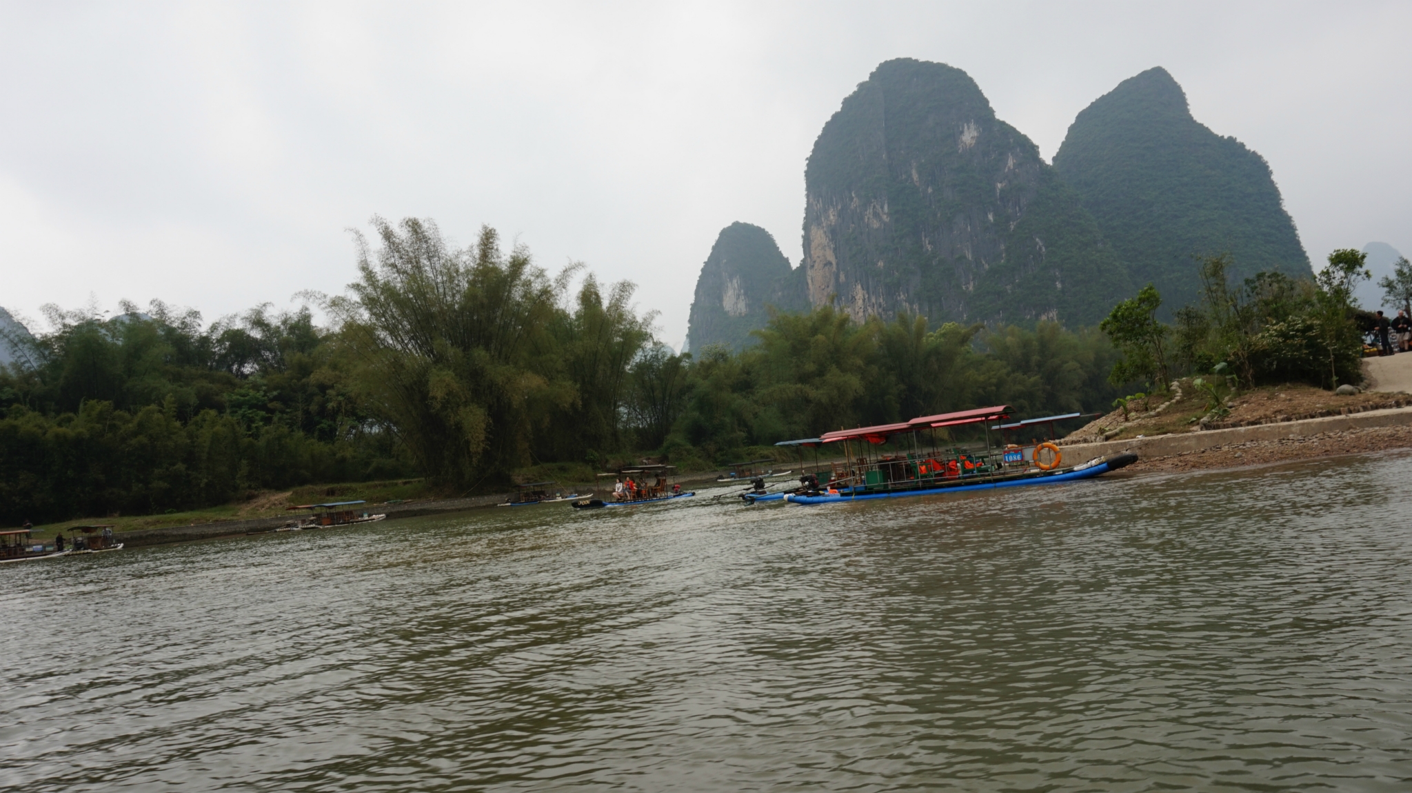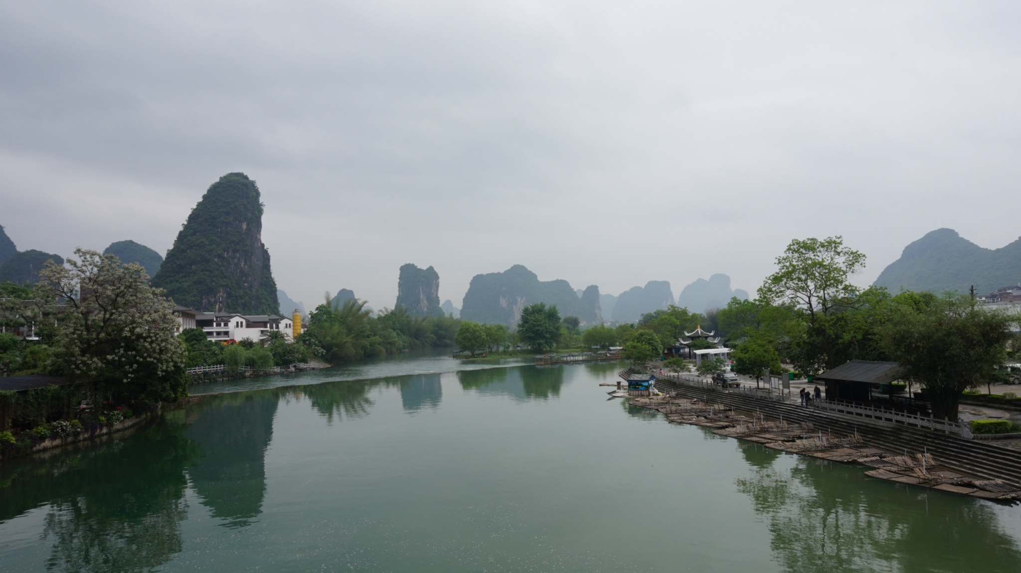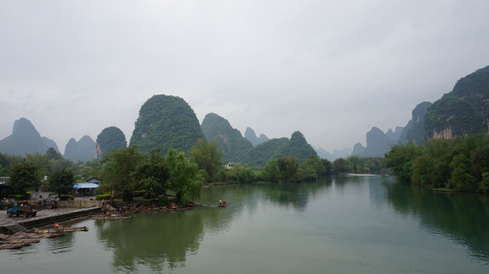 吃完饭看天气尚可(因为天气预报报告一直有阵雨),我们就打算去兴坪漂流,看看“20块钱”,去兴坪的车是从汽车南站出发的,我们从/travel-scenic-spot/mafengwo/10095.html{桂林} 下车的那个汽车站叫汽车北站,北站到南站有当地的特色公交车,黄色的像景区里边的电瓶车,1块钱一位,自动投币不设找零,我们就是走到北站在坐公交车到南站,然后坐到兴坪的,一人7块钱,下了车就有许“拉客”的人,让你从他们那里直接买票漂流,不要进去买票啦,说他们可以安排我们2个人一个竹筏,不用和人拼船也不用加价什么的,后来我们同意了,游半圈到九马画山,一人95块钱,不知道正规的多少钱,应该也差不多多少吧,他们会代我们在门口买票,然后票给我们,可以免费乘坐景区内的电瓶车,景区内有一些私人的摄影师,租了一个点可以免费给游客照相,小照片是免费的,如果觉得照片可以的话可以洗一张大的塑封,价格15元一张,如果不满意一寸的小照片真的是免费的,我们就照了两张,砍价到20两张,吼吼~不贵了吧。