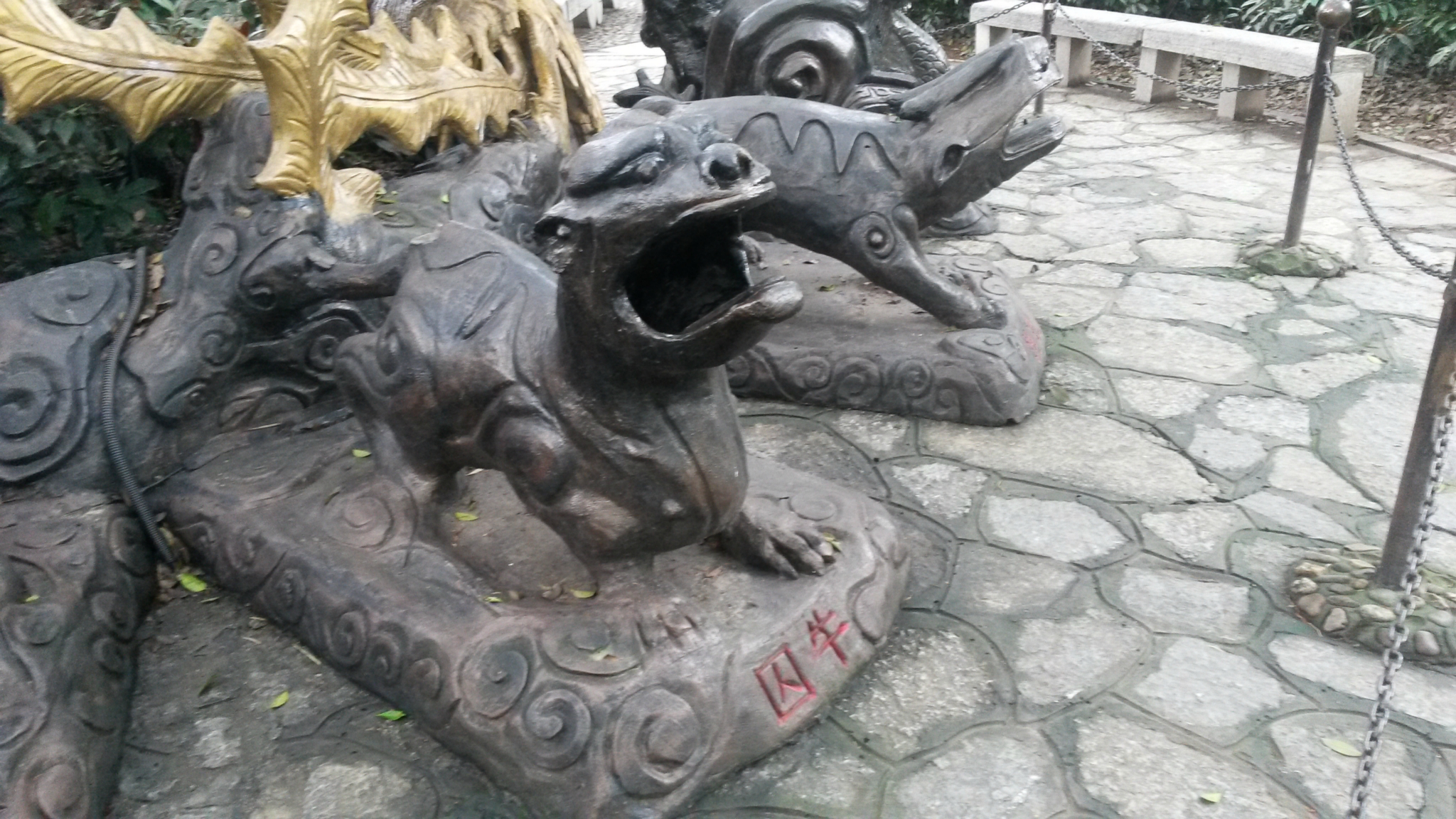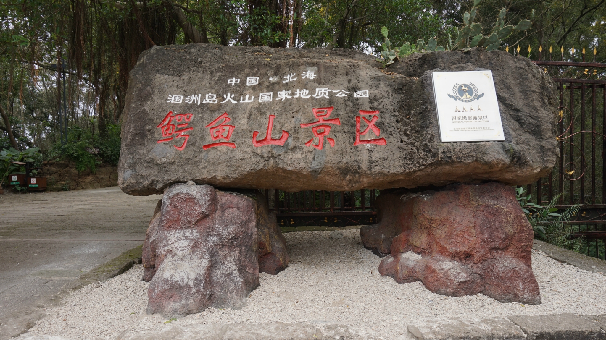 公园里边有三个景点,门口是地址博物馆,在往里边走,一条路是去滴水丹屏的,一条路是鳄鱼山公园的,也可以坐电瓶车过去,20块钱吧单程,我是全步行,先去的博物馆,转了转不大,但凉快有卫生间,在取得鳄鱼山公园,再去的滴水丹屏。
