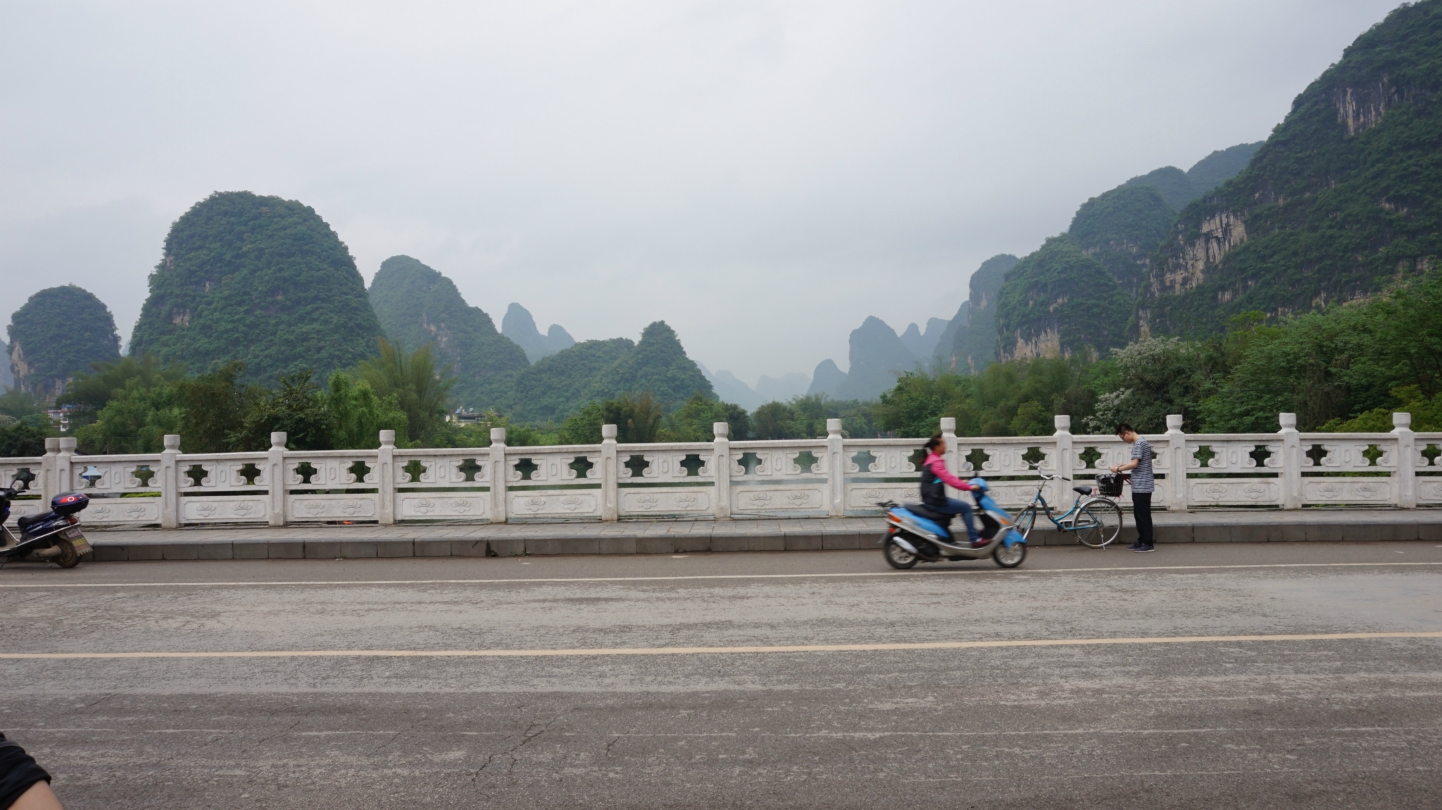 4月16日:早上起床后到酒店对面的街上吃了点早点,就请酒店的老板帮忙租了2辆自行车,因为从他们那里租的话不用付押金了,价格也应该都差不多,我们租的是10块钱一天,没有半天的,骑2个小时也是这么多钱,车子还是挺好骑的,我们今天准备下午去/travel-scenic-spot/mafengwo/10095.html{桂林} 的象鼻山,所以准备在12点退房之前去趟十里画廊,从最远处的月亮山开始往回逛。