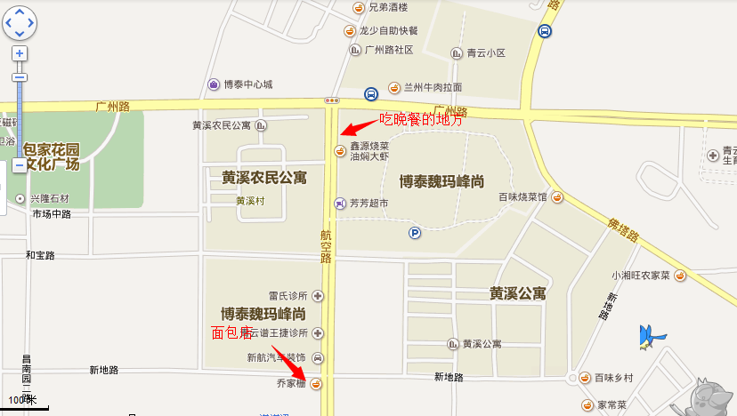 办理完入住就去找吃的了,出租车大叔和前台服务员都告诉我们出门往左走,路的右手边有一些小店,就是小炒啊,烤串啊什么的,我们还是找了一家人多些的,叫/travel-scenic-spot/mafengwo/55331.html{魏玛} 峰小吃小炒,味道不错,价格便宜,我们点了一个土豆丝,一个桂花炒年糕,一盘饺子,一份凉菜,还有一份服务员推荐的茄子,铁板茄子什么的,一共花费55元,吃完回酒店的路上碰到了一家比较大的面包店,远远的就闻到了面包的香味,因为店的后边就是工厂,我们进去买了2个老公饼,2盒牛奶,2个菠萝包,一共花了17块钱,之后再/travel-scenic-spot/mafengwo/11754.html{南昌} 的其他地方也看到这个面包店了,连锁的。