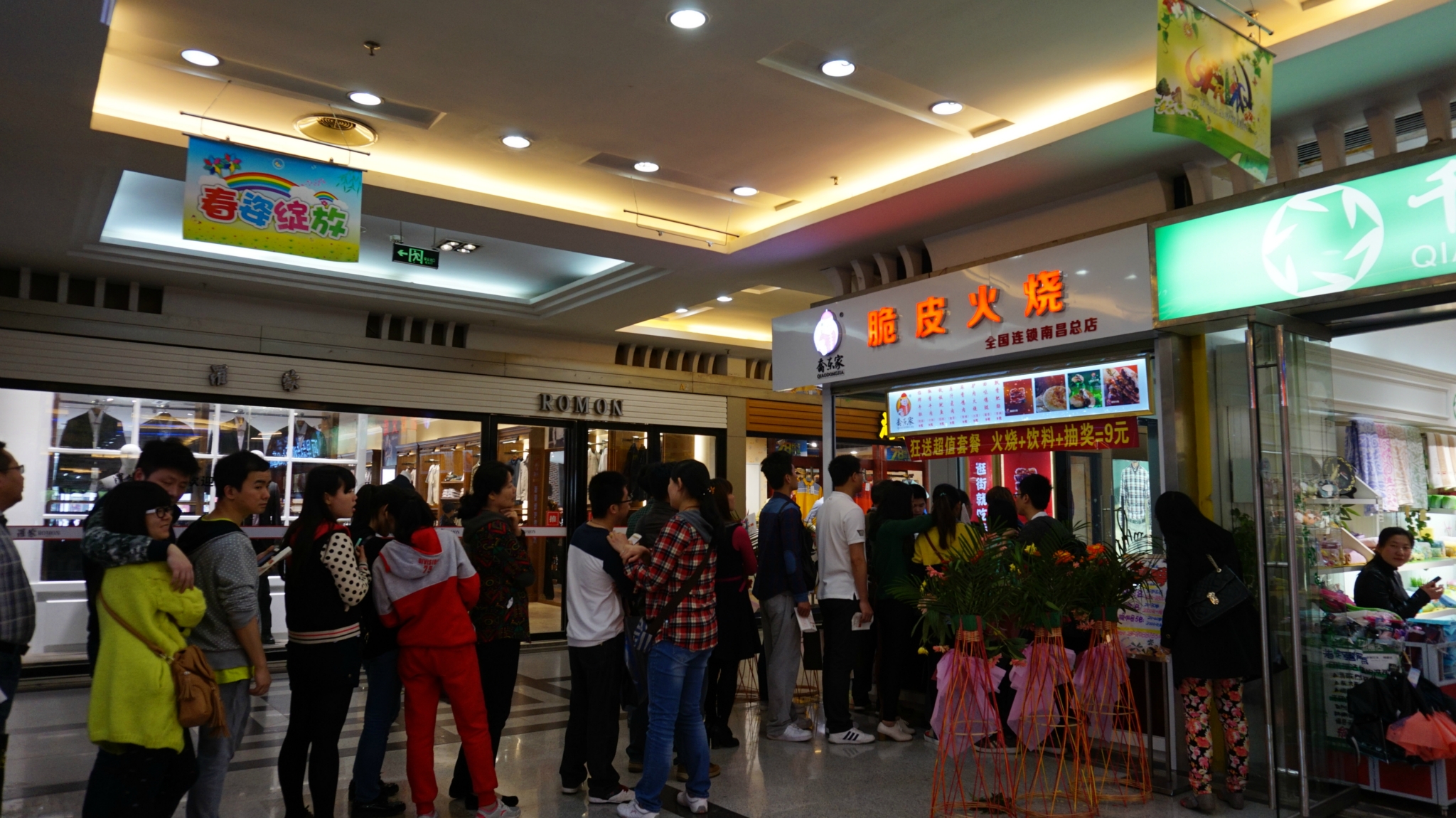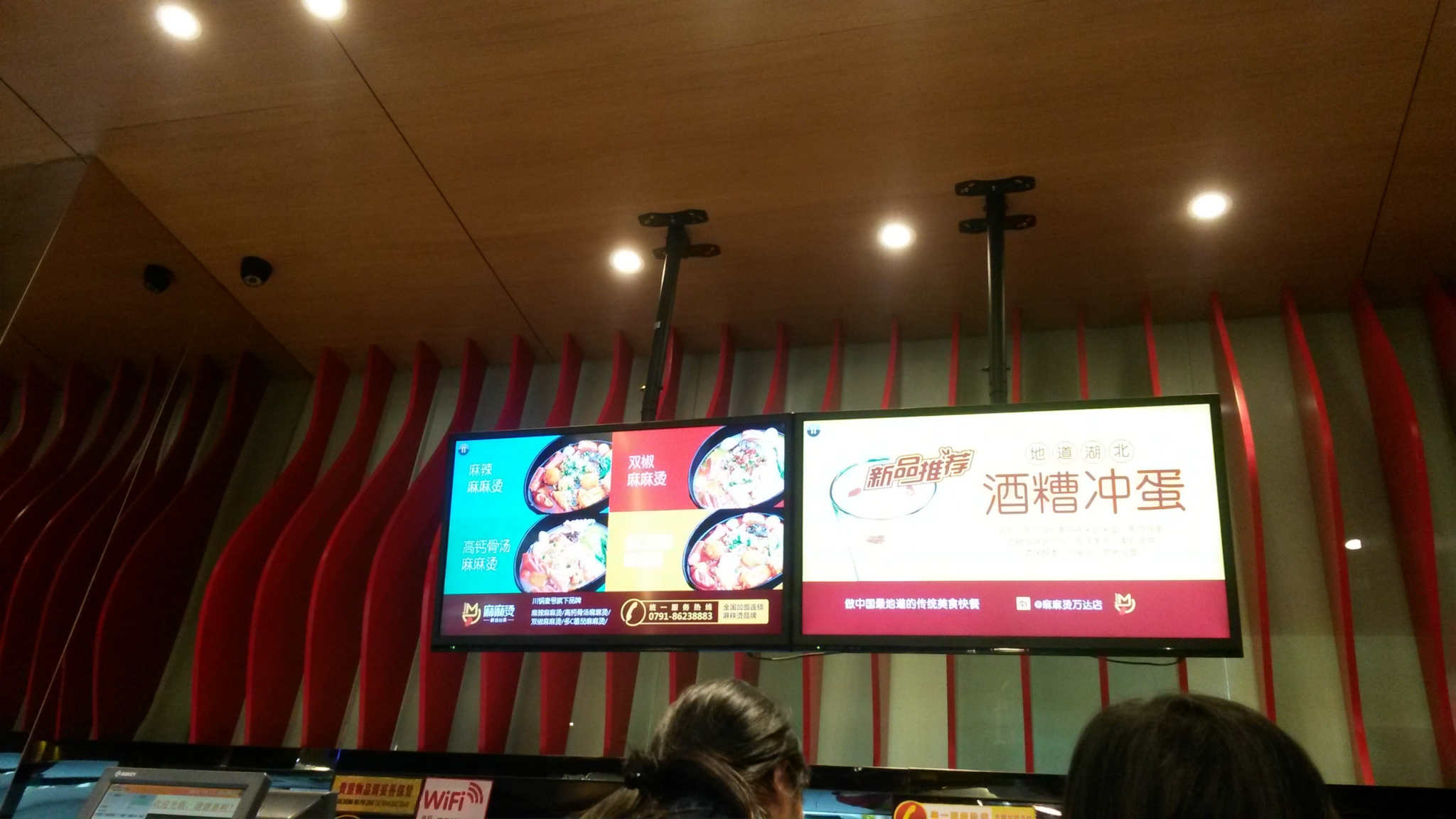 参观完滕王阁后坐公交车到八一广场。下车先去对面的万达广场里找吃的,找了半天找了一家麻辣烫,看着挺干净的就进去了,2人一共点了57的,多的没吃了。