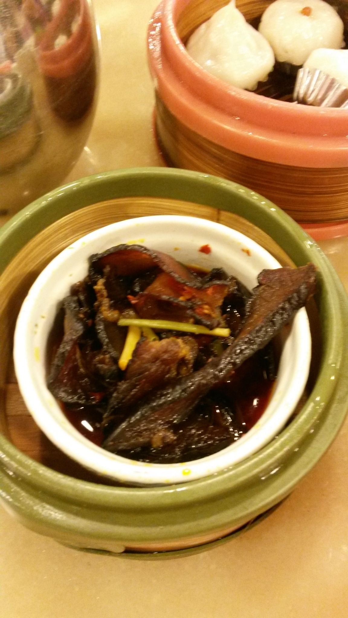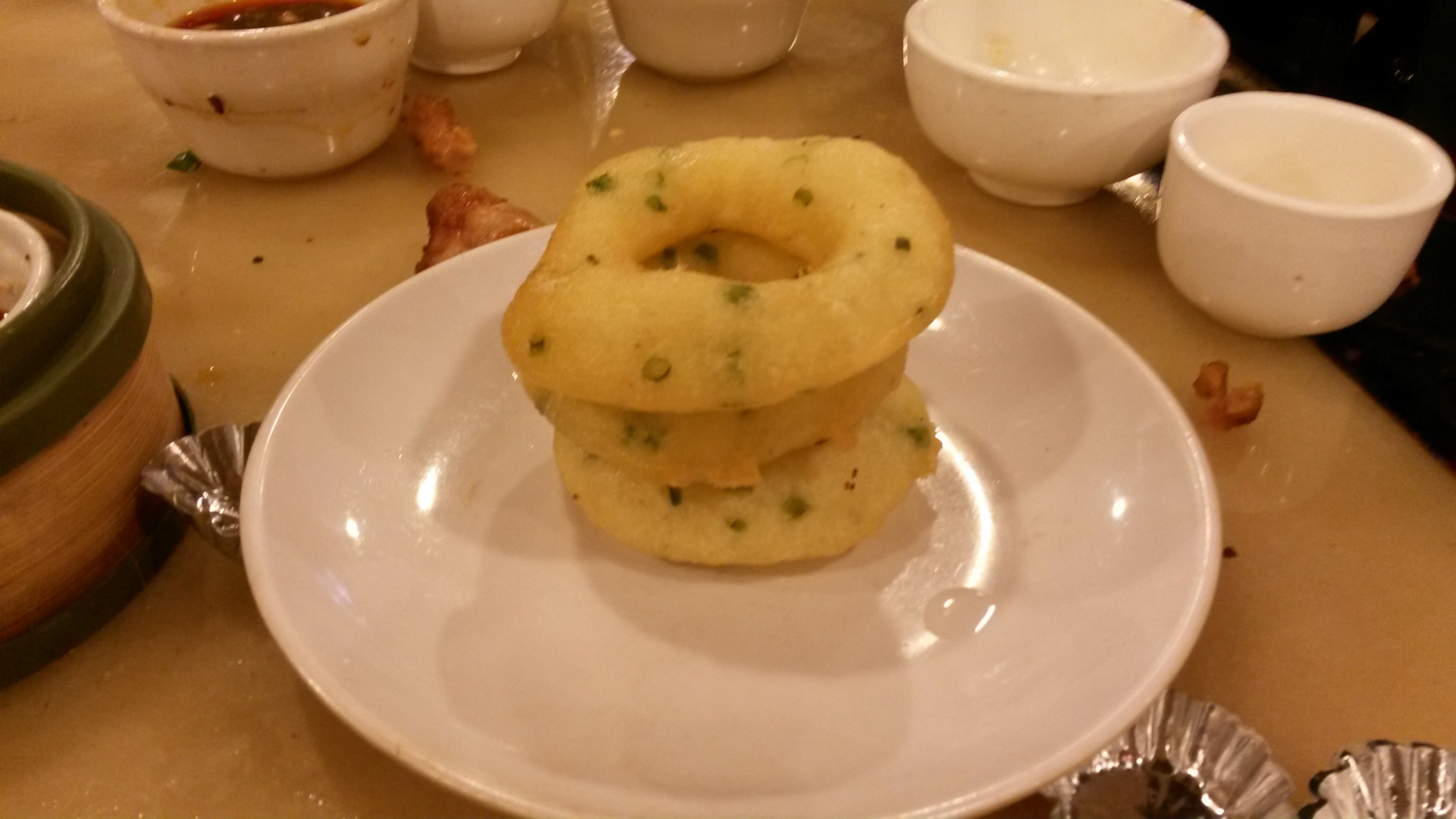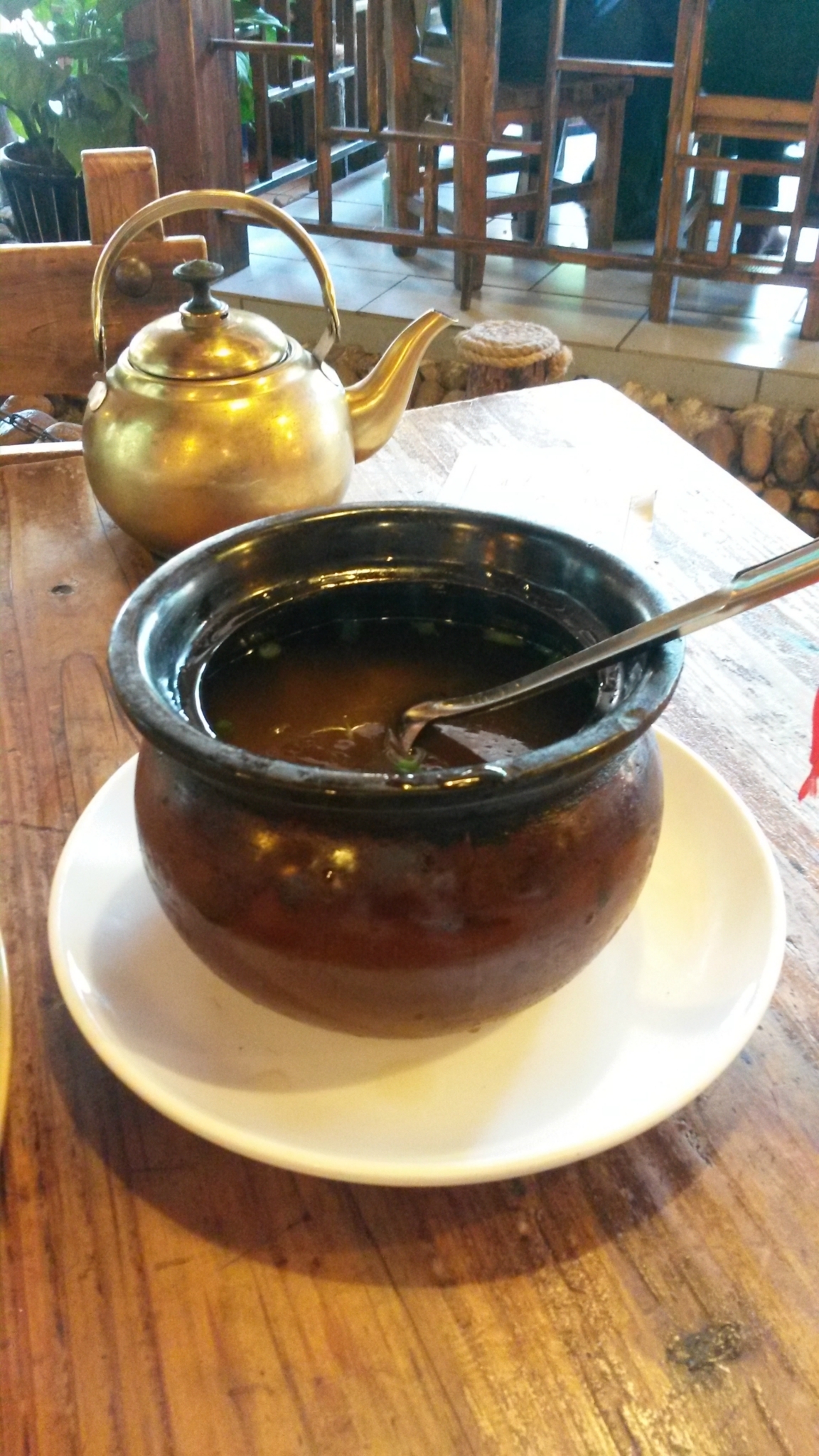 早餐和前台打听告诉我们向前走,看到公交车站往右手边胡同进去,里边有吃的,去古窑就在这个公交车站坐车就可以了,那条小巷交太白园路,里边有个菜市场,好多早餐小摊,我们选了一家人比较多的叫什么飞云阁米粉店,点了2碗鸭汤米粉,一小碟香菇鸡肉,一小碟鸭肠,一个茶叶蛋,在对面买了一根油条,一共花了14块8,味道还不错,环境很一般。