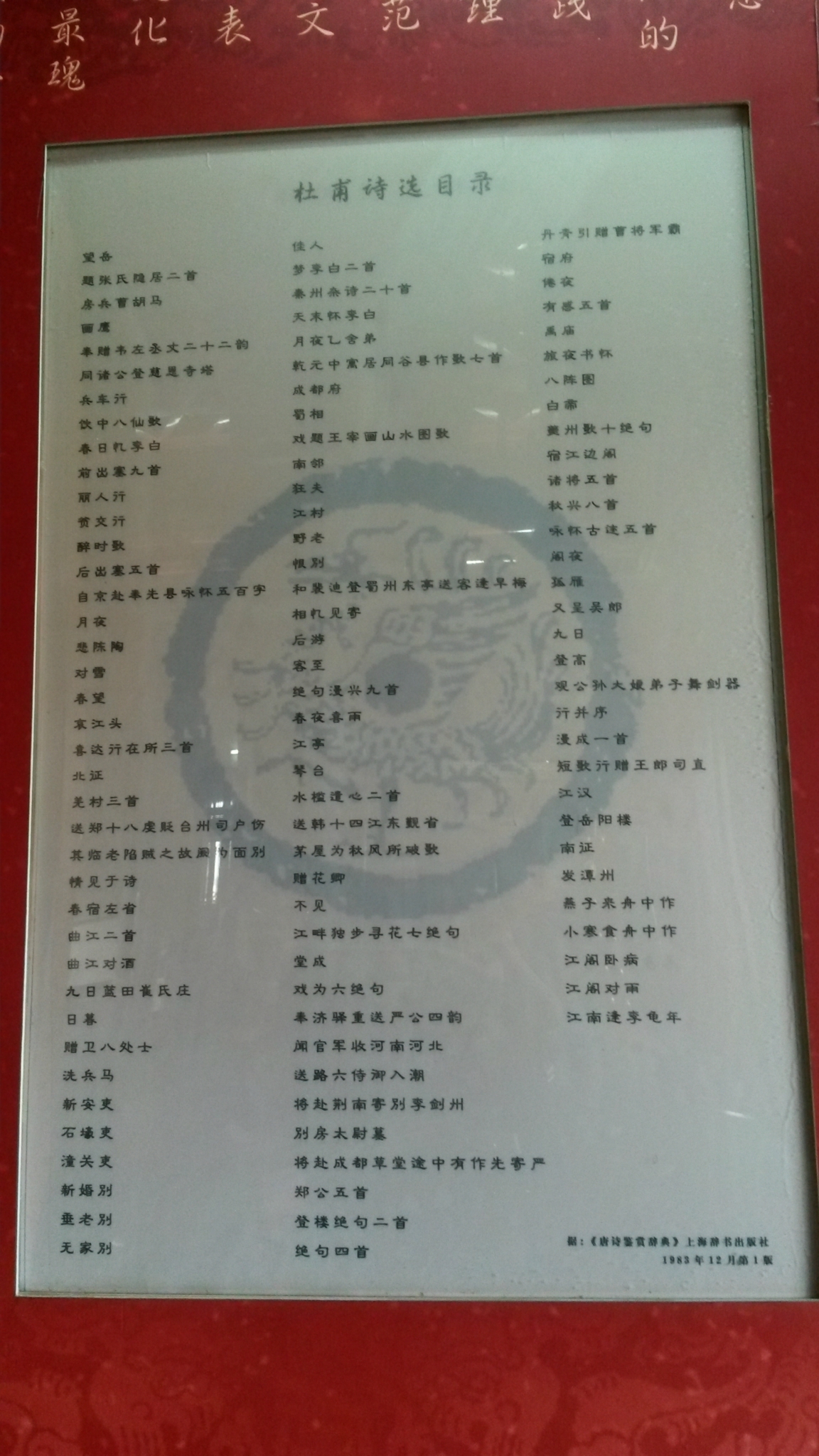 /poi/329.html{天心阁(/poi/329.html)} 出来后本来计划坐406路公交车去坡子街吃小吃的结果还差2站到的时候看见了一个杜甫江阁,于是果断下了车去里边转了一圈。东西不多,没什么可看的,门票也不贵12块钱,学生半价。