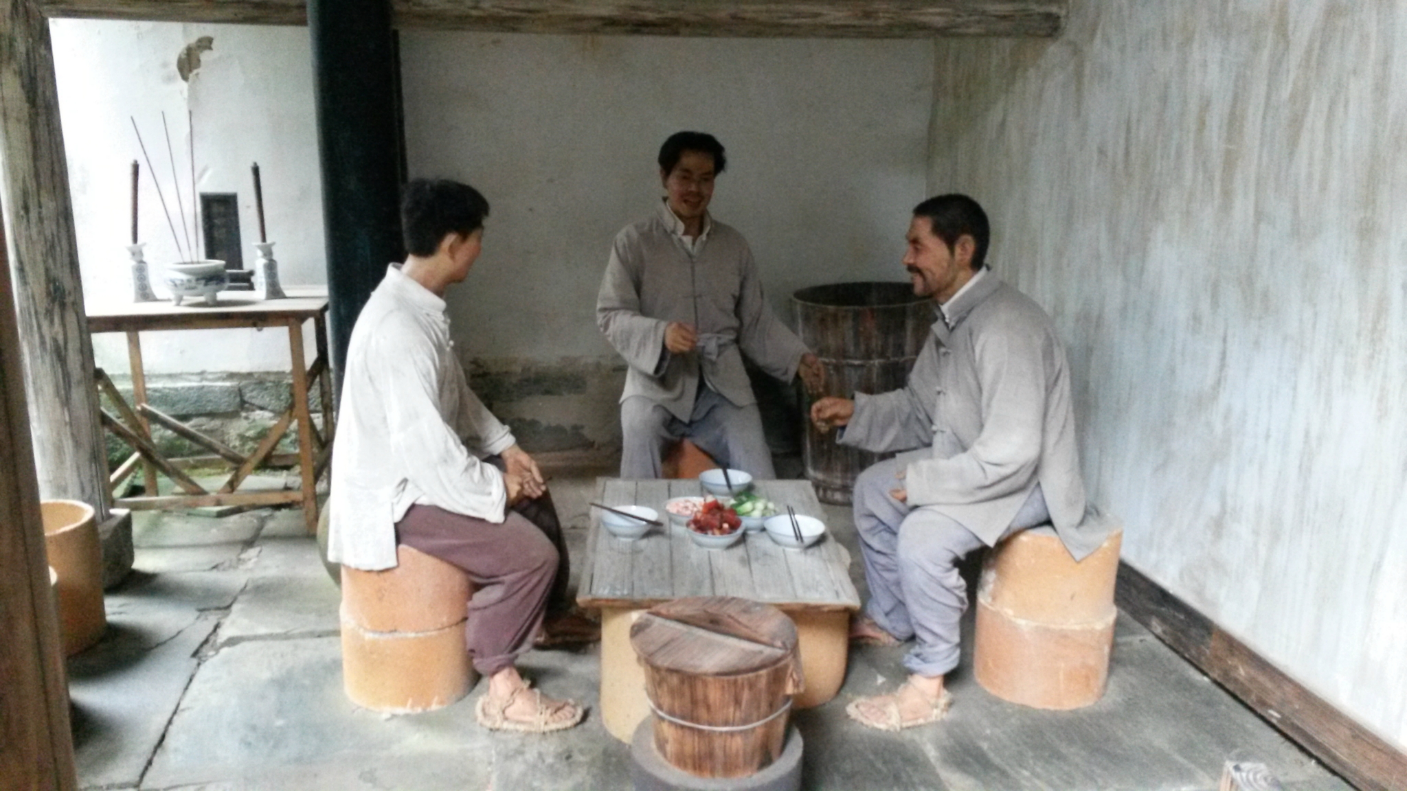 吃完饭就直接走去车站等车到最近的景点/poi/2814.html{思溪延村(/poi/2814.html)} 了,车费8块钱,在等车的时候会有很多的人问你要不要包车,可以带你去景点,不用买通票,门票优惠什么的,哪个更实惠还是看自己的谈判和行程吧,由于我们没有固定的安排,就只是打算买了通票能转多少转多少,也没有听他们的,在路边顺手买了怡宝的矿泉水2块钱一瓶。