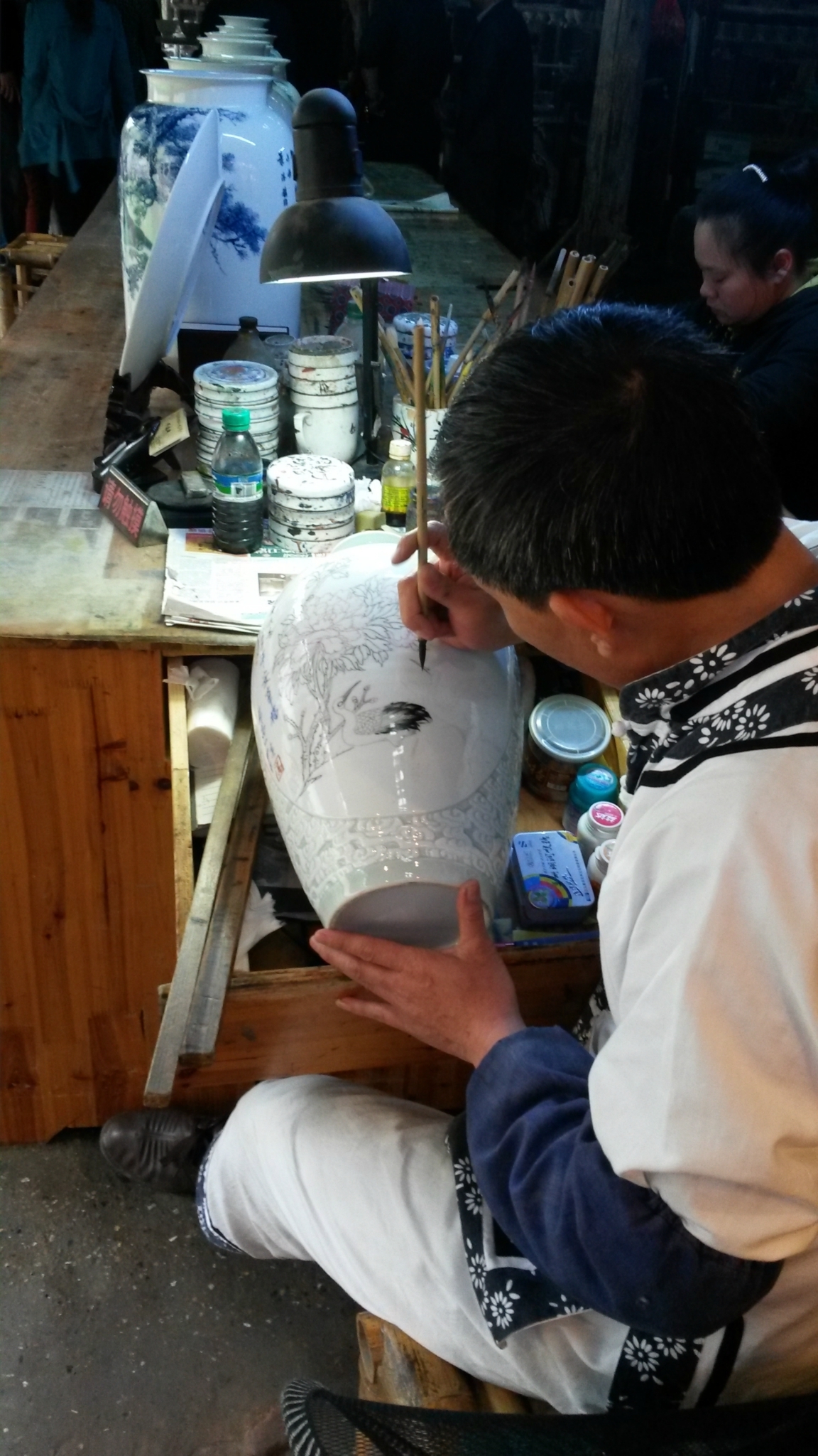 办完入住后就开始向市中心的广场瞎逛啦,路边好多卖瓷器的,我同事买了一套56头的餐具,开价380元,砍到350元,可以用物流寄回去,邮费自付,但物流邮寄碎了可以包退换,也可以吧。
