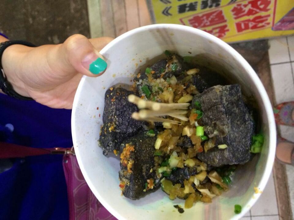 这家排队的人很多,臭豆腐刚炸出来的外焦里嫩,很好吃,好像是小份8块钱6块,中份16块钱12块,我们买的中份。