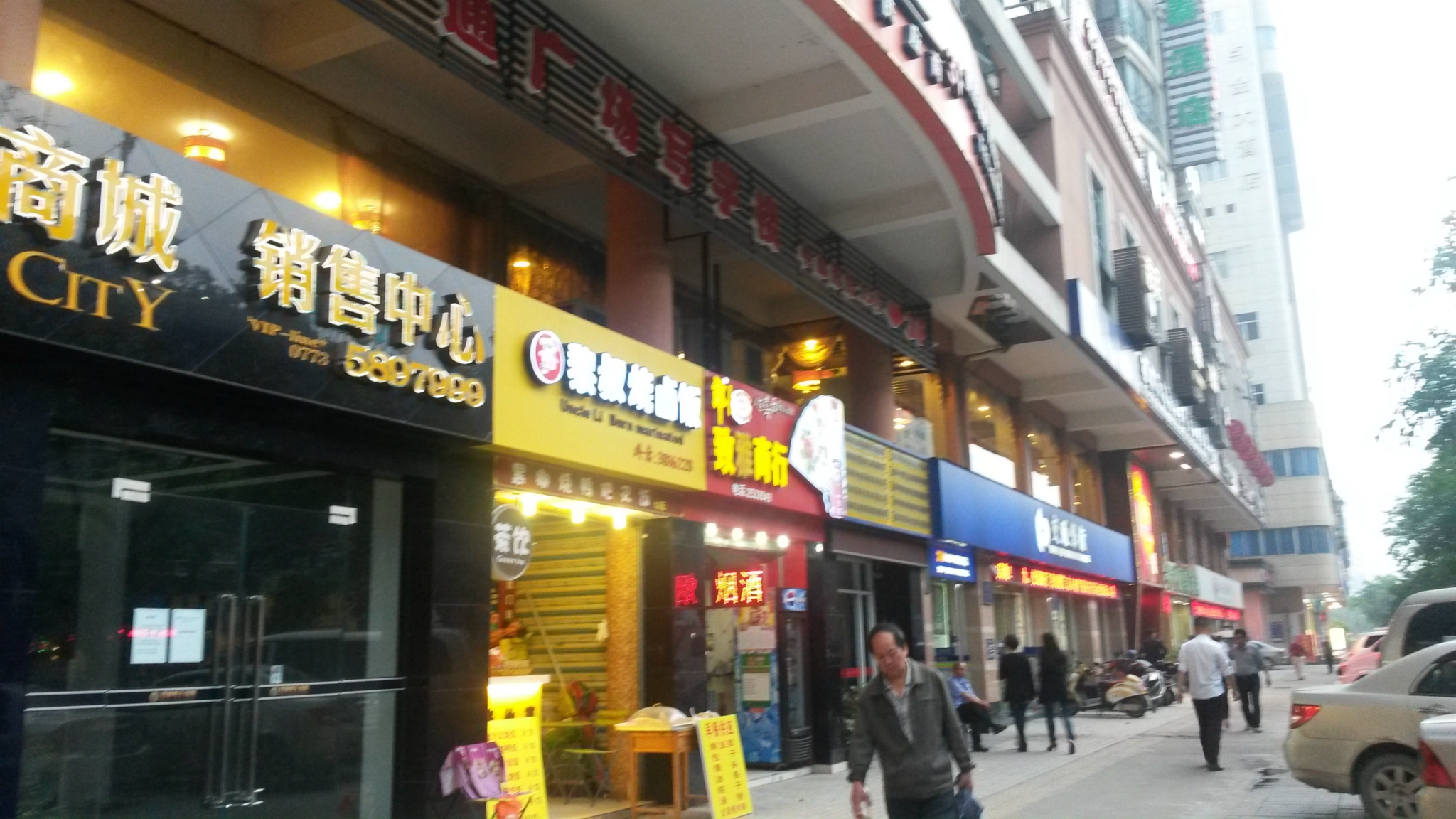 先到公园标志附近吃些东西,店不少人不多,就随便找了个人比较多的店,点了一份米线,15元,凑合吃吧。出来在路边买了一瓶可乐5块钱。
