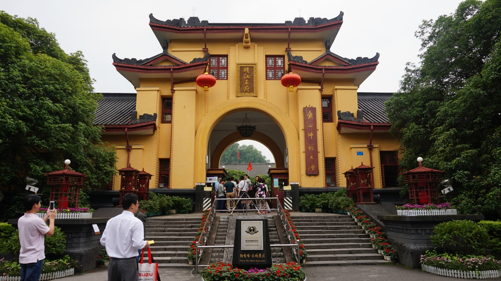 12点左右从酒店出发去独秀峰王城景区和/travel-scenic-spot/mafengwo/10508.html{漓江} 民俗度假村,独秀峰这个也是一个5A景区,从酒店对面火车站那边的车站花1块钱坐11路到解放桥下车走着过去就可以了。门票130还是挺贵的,学生半价,买门票的时候售票员会问你是否是出租车拉你过来的,应该出租车会有返点,进去之后景区/travel-scenic-spot/mafengwo/16104.html{会安} 排免费导游带大家参观,基本是10分钟一批,人多的话可以提前走,进门验票的时候就会发你队牌和耳机,参观完之后交给导游就可以自由活动了,当然也可以半路离队,不过虽然讲解中会2-3次推销他们的纪念品,不过听听还是挺有意思的,而且最后可以体验一把科举考试哦,真的是一个人一个屋子,一张考卷,毛笔作答,不过因为要判卷考卷都收回去了,没有留下纪念。