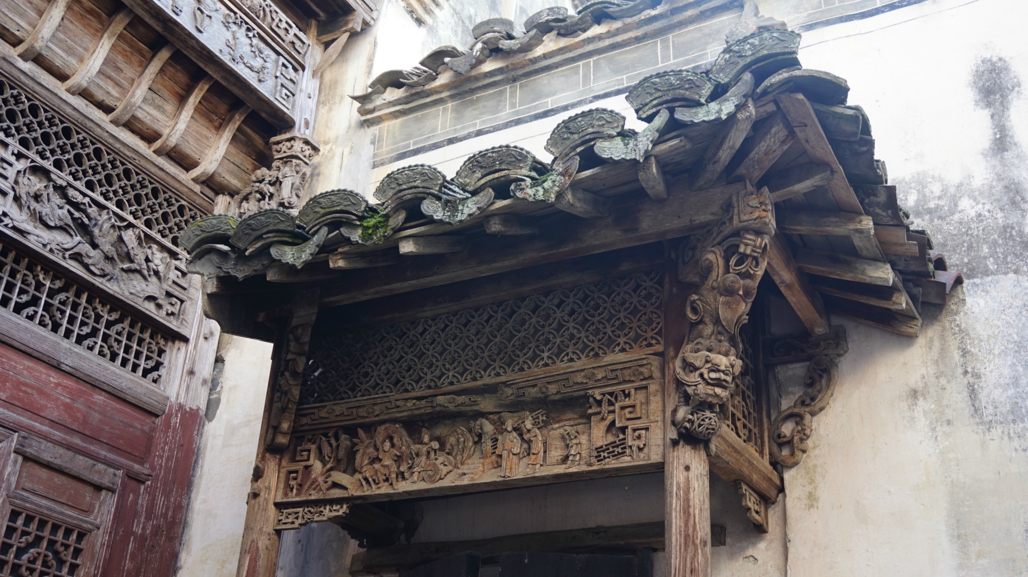 先进去的那个村子是延村,后边的是思溪村,景区有电瓶车往返2个村子,我们是沿着马路直接走过去的,大概花了半小时吧。村子里的建筑雕刻着十分精美的木刻,但好多都被破坏了,说是破坏的,可惜啊。