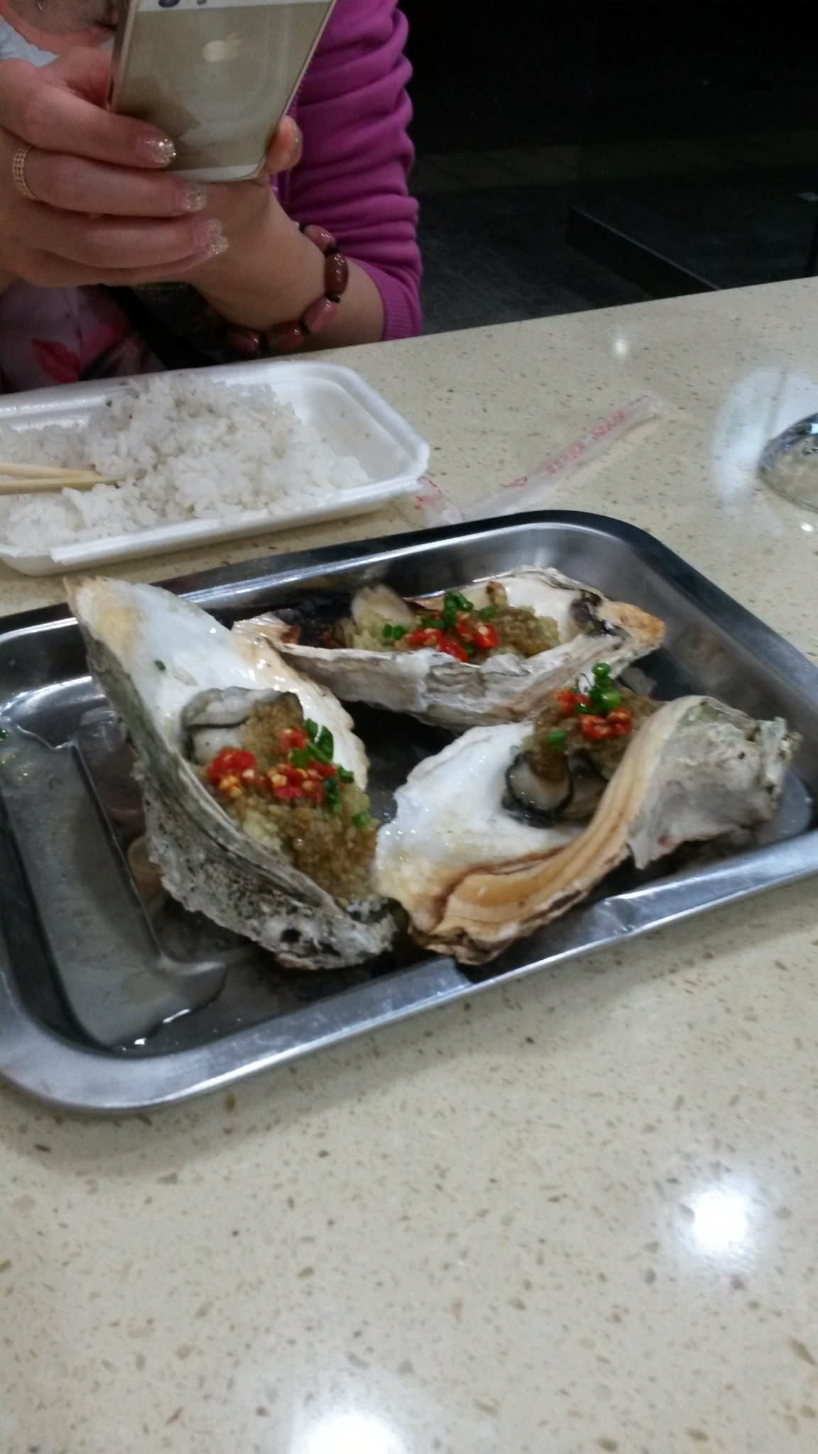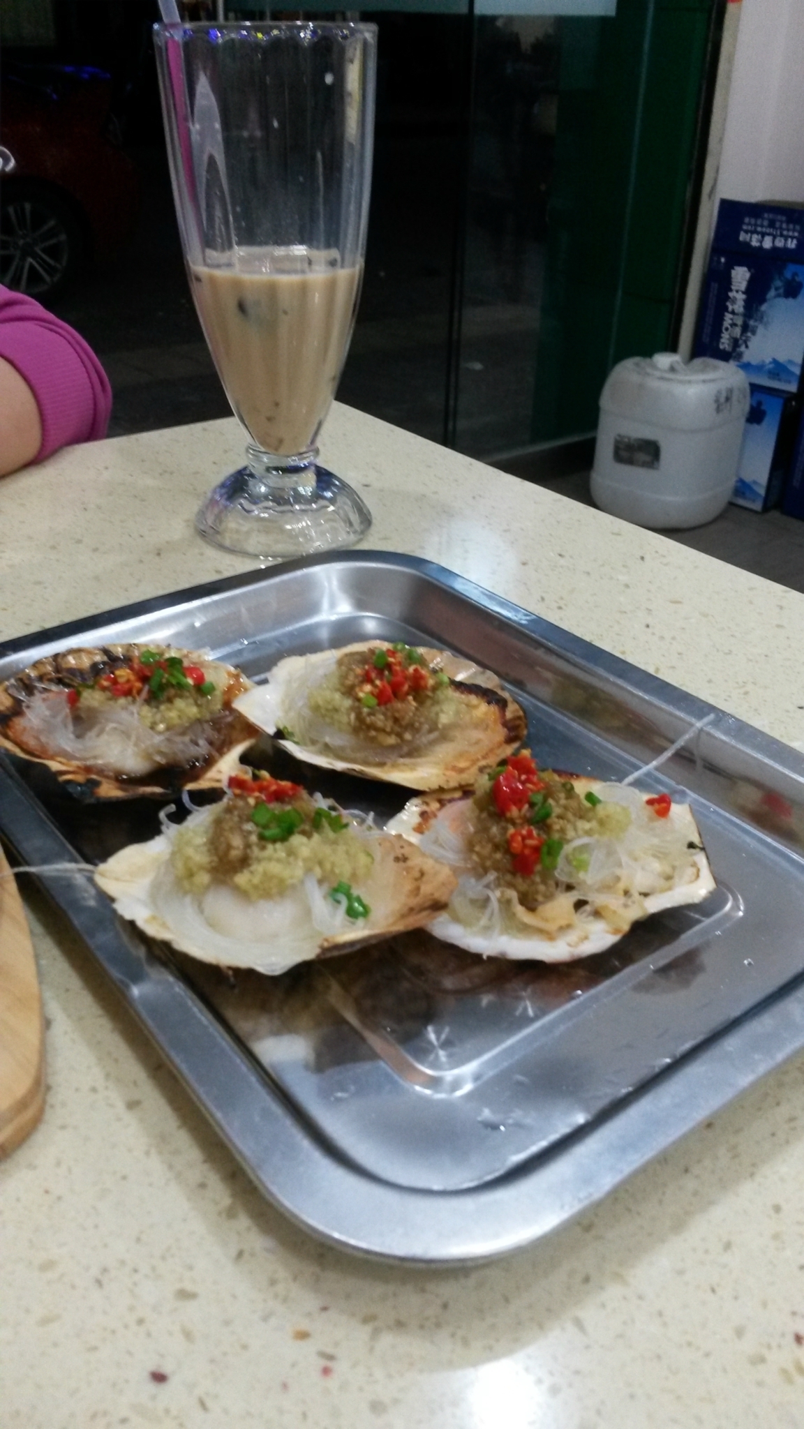 晚饭就在酒店附近瞎逛,因为我们住的酒店是个还不错的小区,旁边餐馆也不少,我们就选择了一个海鲜小馆,就在我们小区出门口右手边的一条街里。海鲜味道不错,偏辣,我们还要的是少辣呢,但越吃越上瘾,他们家没有主食,米饭是我们在旁边家打包过去的。我们点了花哈,虾,扇贝,生蚝。两杯饮料。一共花费108元。吃完饭走路去看那个亮着灯的桥,忘记叫什么名字了,但灯亮着很明显。也很漂亮。看完回家睡觉。